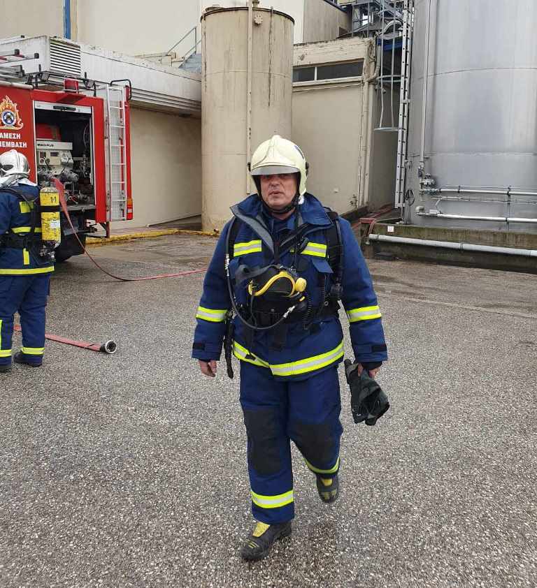 Το σενάριο της άσκησης περιελάβανε την έναρξη της πυρκαγιάς σε γραμμή παραγωγής με την χρήση υγραερίου και μάλιστα σε σημείο του κτηρίου της επιχείρησης δαιδαλώδης. Ένα άτομο εργαζόμενος της επιχείρησης βρίσκεται εγκλωβισμένο σε εξωτερικό εξώστη.