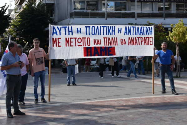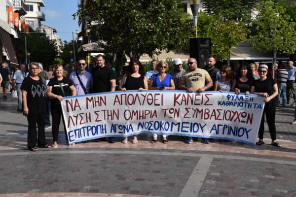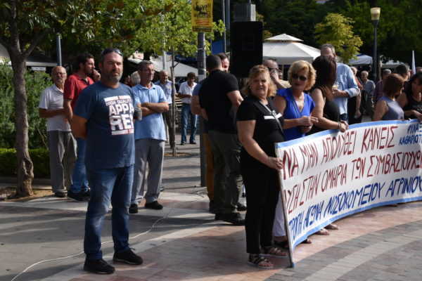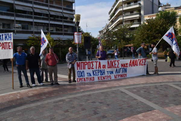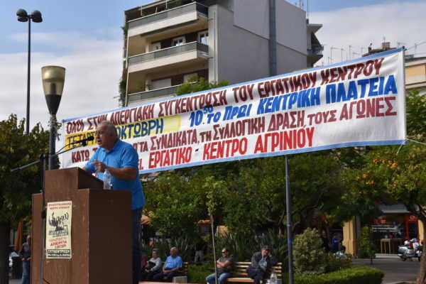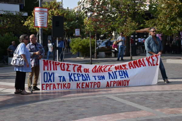Όπως σε όλη την Ελλάδα έτσι και στη πόλη του Αγρινίου πραγματοποιήθηκε χθες 2 Οκτωβρίου το πρωί στην πλατεία Δημοκρατίας η προγραμματισμένη απεργιακή συγκέντρωση.