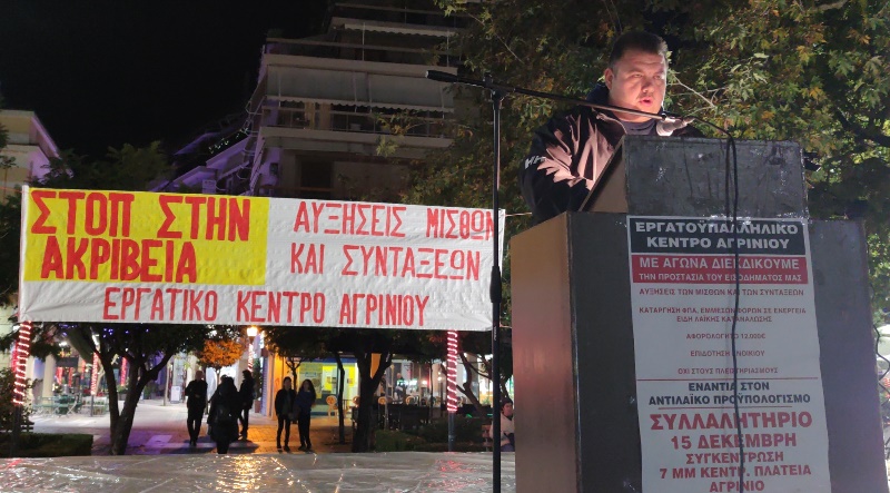 Πραγματοποιήθηκε το συλλαλητήριο ενάντια στο αντιλαϊκό προϋπολογισμό και στο Αγρίνιο σήμερα Παρασκευή 15 Δεκεμβρίου με την ομιλία του κου Παναγ. Πατούλα και ολοκληρώθηκε με πορεία και συνθήματα σε κεντρικούς δρόμους της πόλης.