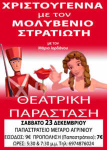 ” Χριστούγεννα με τον Μολυβένιο Στρατιώτη” που θα παρουσιαστεί το Σάββατο 23 Δεκεμβρίου στο Παπαστράτειο Μέγαρο, στο Αγρίνιο.