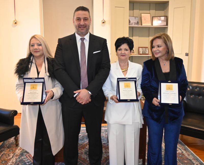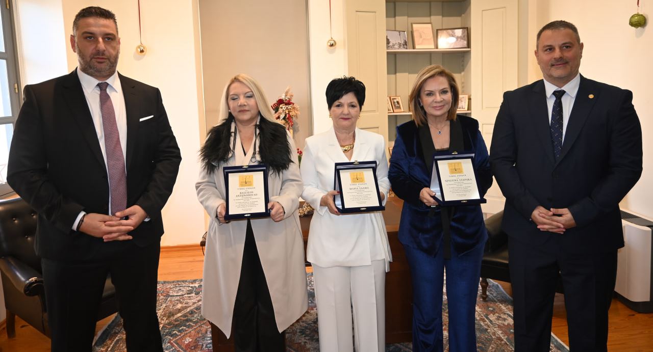 Κατά τη διάρκεια της δεξίωσης, απονεμήθηκαν αναμνηστικές πλακέτες σε πρώην Χωρικούς Αντιπεριφερειάρχες Π.Ε. Αιτωλοακαρνανίας, ως αναγνώριση του πολυετούς έργου και της σημαντικής προσφοράς τους στην αυτοδιοίκηση και την ανάπτυξη της περιοχής. Συγκεκριμένα, τιμήθηκαν η κα Χριστίνα Σταρακά, νυν Βουλευτής Αιτωλοακαρνανίας του ΠΑΣΟΚ-Κινήματος Αλλαγής, και η κα Μαρία Σαλμά. Επιπλέον, απονεμήθηκε τιμητική πλακέτα στη μνήμη του αείμνηστου Βασίλη Αντωνόπουλου, πρώην Αντιπεριφερειάρχη Αιτωλοακαρνανίας και διακεκριμένου παιδιάτρου, ο οποίος απεβίωσε το 2020. Την πλακέτα παρέλαβε εκπρόσωπος της οικογένειάς του.