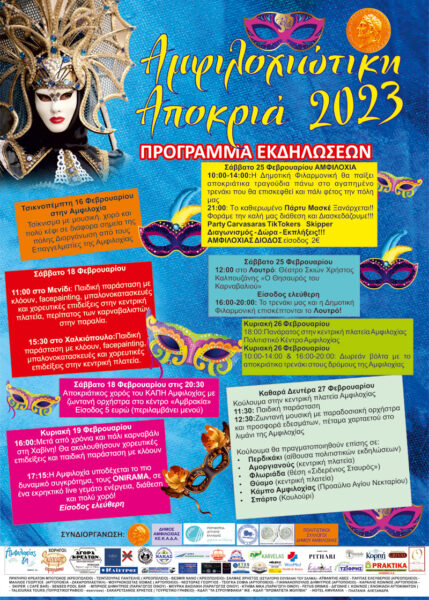 10:00-14:00 & 16:00-20:00: Δωρεάν βόλτα με το αποκριάτικο τρενάκι στους δρόμους της Αμφιλοχίας