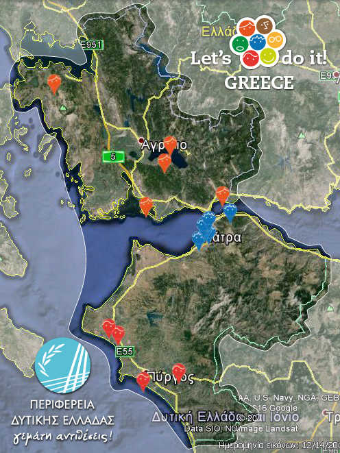 Ξεκίνησε ήδη η χαρτογράφηση των δράσεων που θα γίνουν στην Περιφέρεια Δυτικής Ελλάδας για τη μεγάλη εθελοντική καμπάνια «Let’s do it Greece», την Κυριακή 17 Απριλίου 2016.map-01Εθελοντές, φορείς, σύλλογοι, σχολεία, Δήμοι, ομάδες –istas κ.α. έχουν ήδη δηλώσει τις δράσεις που διοργανώνουν σε κάθε περιοχή και των τριών Περιφερειακών Ενοτήτων Αιτωλοακαρνανίας, Αχαΐας και Ηλείας της Περιφέρειας Δυτικής Ελλάδας.