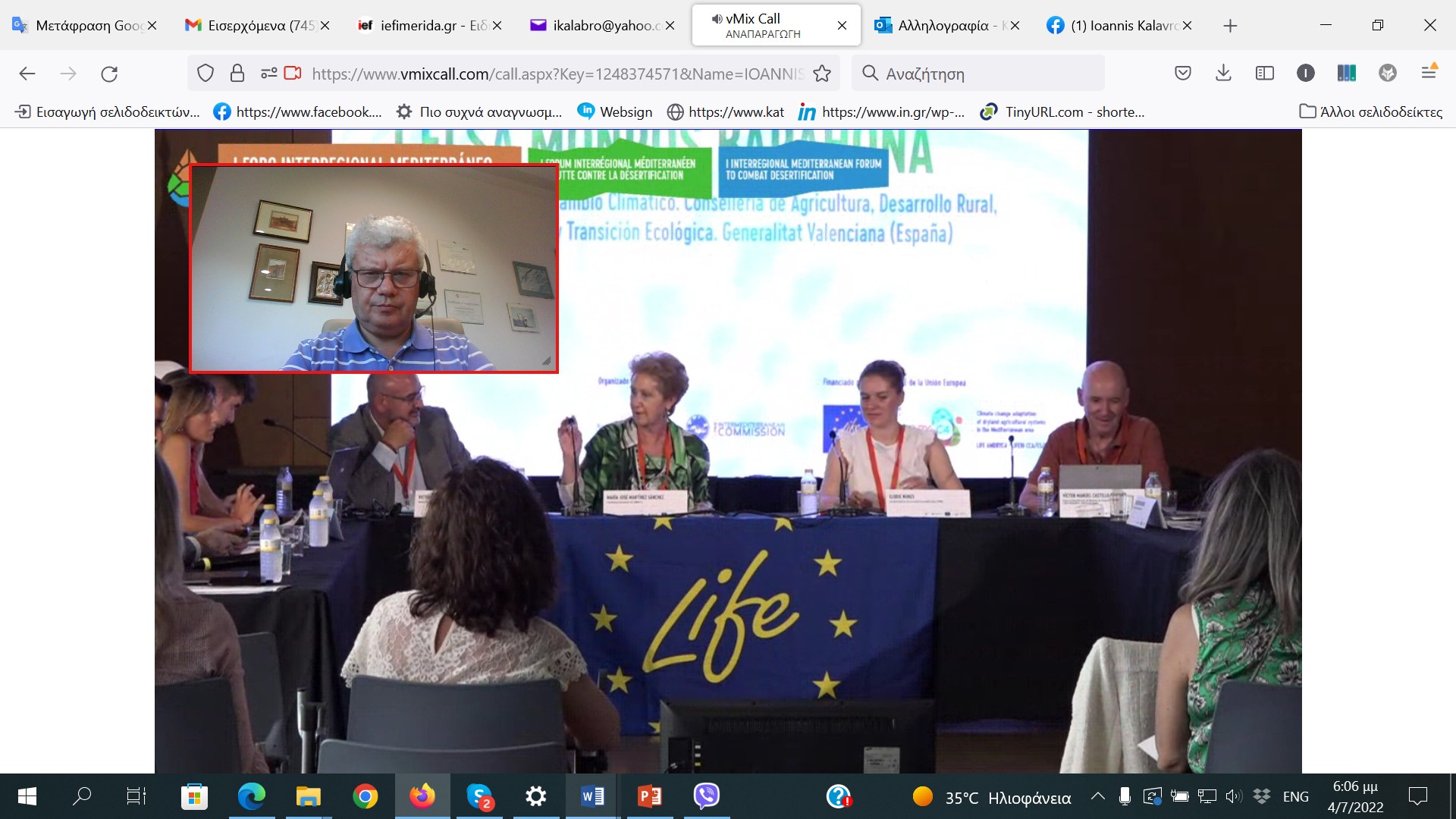 Ο Πρόεδρος του Συμβουλίου Έρευνας & Καινοτομίας Ιωάννης Καλαβρουζιώτης εκπροσώπησε την Περιφέρεια Δυτικής Ελλάδος στο 1ο Μεσογειακό Διαπεριφερειακό φόρουμ για την καταπολέμηση της ερημοποίησης , (1st Mediterranean Interregional Forum to Combat Desertification), το οποίο έγινε στη Μούρθια της Ισπανίας , που είναι ενεργό μέλος της CPMR, τη Δευτέρα 4 Ιουλίου 2022.