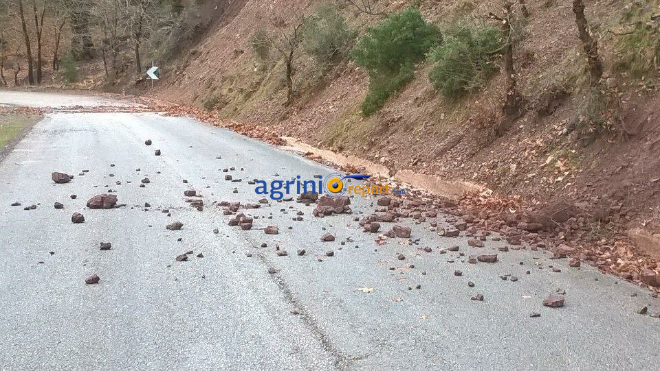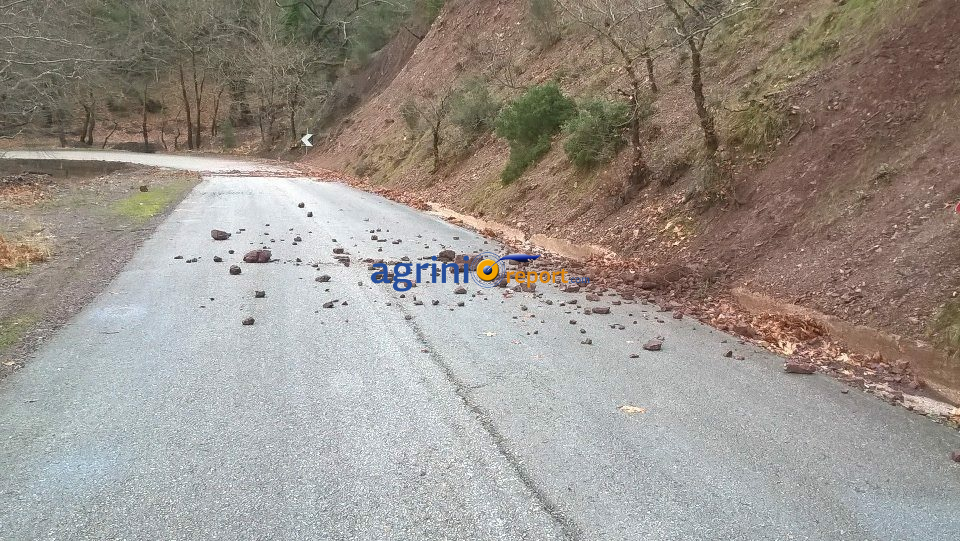 Όπως φαίνεται και στις φωτό, σημειώθηκε μια μικρή κατολίσθηση από το παρακείμενο βουνό, με αποτέλεσμα μικρές αλλά και μεγαλύτερες πέτρες να καταπέσουν στη μέση του δρόμου και να αποτελούν κίνδυνο για τους διερχόμενους οδηγούς.