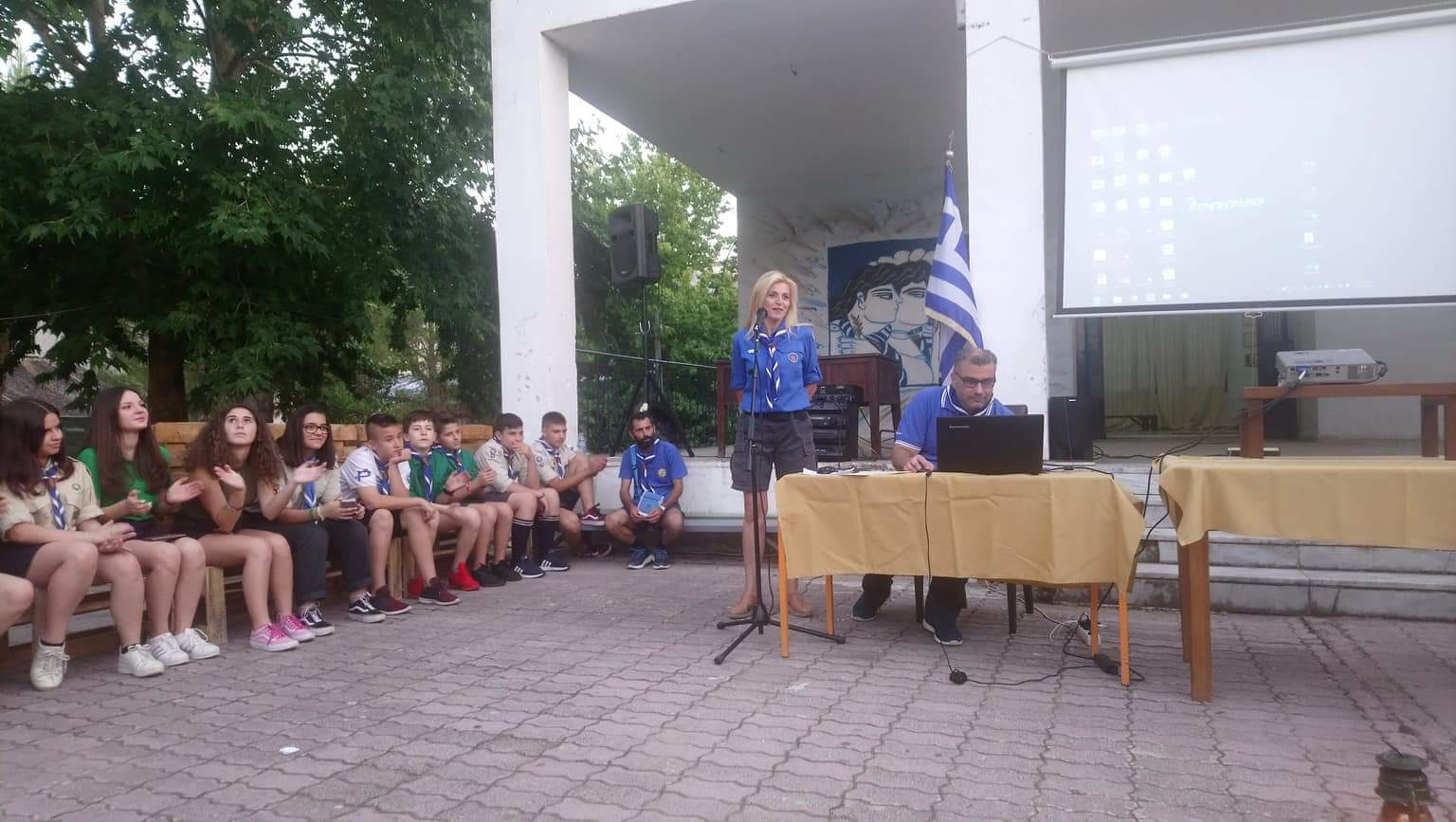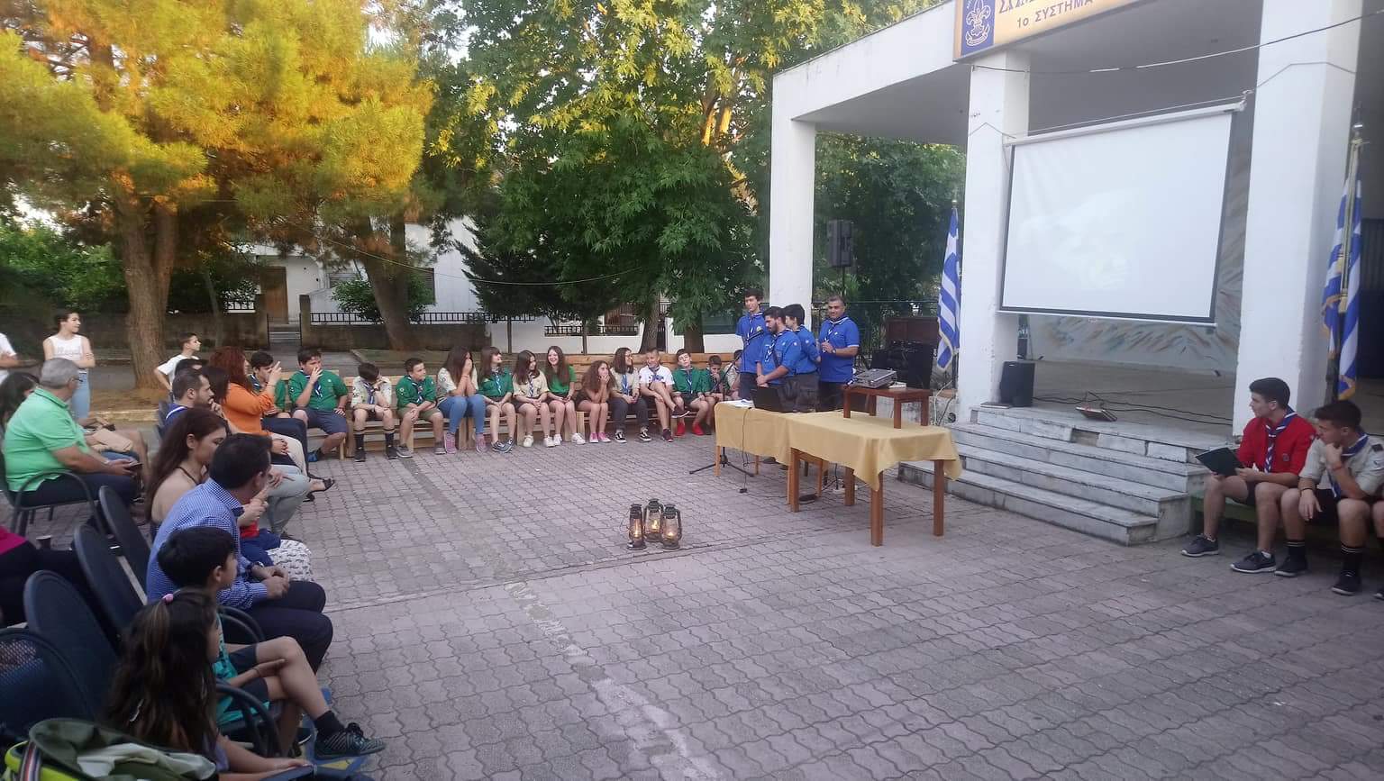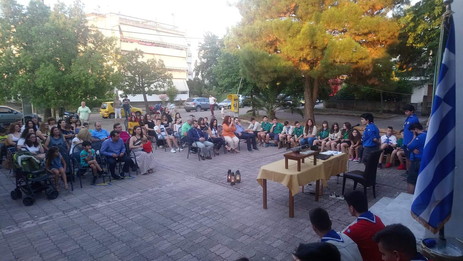 Λυκόπουλα , πρόσκοποι και ανιχνευτές μαζί με γονείς και επίσημους μαζευτήκαμε στο προαύλιο χώρο του συστήματος μας ώστε να κλείσουμε την προσκοπική χρονιά του 2017 – 2018 .