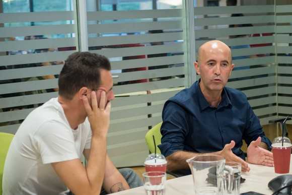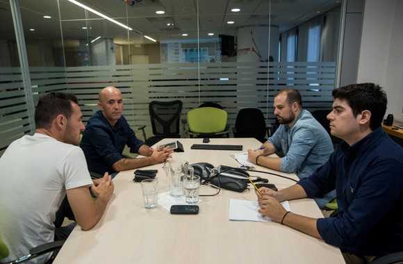 Ο Λιονέλ Πόντες με τον συνεργάτη του Αλέξανδρο Μανιάτογλου, “ανακρίνονται” από τους Δημήτρη Σαμόλη και Βασίλη Ταμπέλη στα γραφεία του Sport24