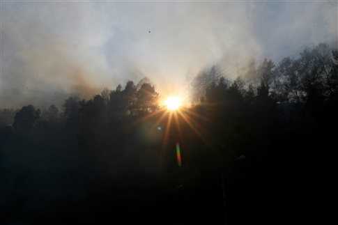Το μέτωπο της φωτιάς εκτείνεται σε πολλά χιλιόμετρα και η πρόσβαση είναι πολύ δύσκολη στις επίγειες δυνάμεις.