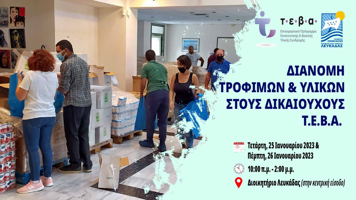 Π.Ε. Λευκάδας: Ξεκινά νέος κύκλος διανομών τροφίμων και υλικών στους δικαιούχους ΤΕΒΑ την Τετάρτη και Πέμπτη 25 & 26 Ιανουαρίου 2023.