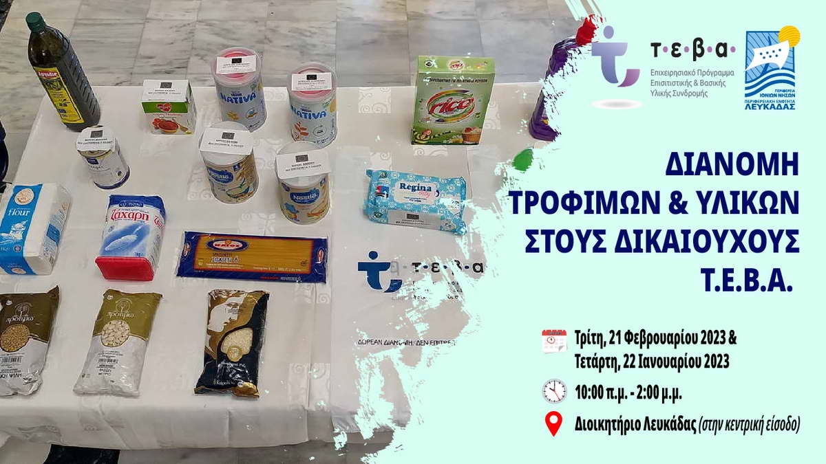 2023.02.17 @ Π.Ε. Λευκάδας: 21 & 22 Φεβρουαρίου 2023 η νέα διανομή ΤΕΒΑ. #ΠΙΝ #Λευκάδα #Κοινωνία #Συνοχή #Πρόνοια #Αλληλεγγύη #ΤΕΒΑ #FEAD #ktenasandreas #antipin_lefkada #ΠεριφερειακήΕνότηταΛευκάδας #ΠεριφέρειαΙονίωνΝήσων