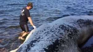 «Είναι μια μεγάλη φάλαινα που την έβγαλε η θάλασσα έξω και δυστυχώς δεν την πήρε είδηση κανείς» λέει ο δύτης που έφτασε στο σημείο και συνεχίζει: «η αίσθηση είναι περίεργη μπροστά σε μια τέτοια εικόνα».