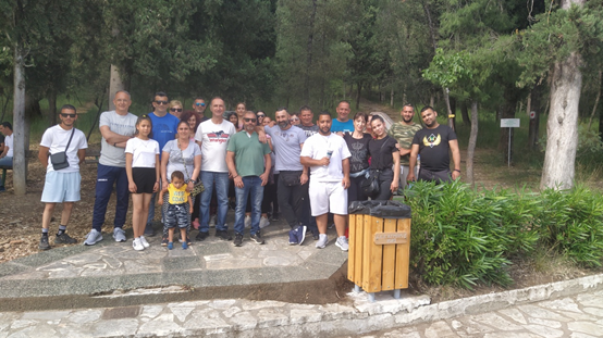 Στη συνέχεια εκπαιδευτικοί και εκπαιδευόμενοι πραγματοποίησαν καθαρισμό του χώρου πέριξ της βρύσης, των μονοπατιών που οδηγούν στον χωμάτινο δρόμο που διασχίζει απ΄ άκρου εις άκρον το περιαστικό άλσος αλλά και τμήμα του δασικού δρόμου.