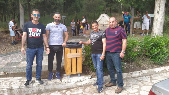 Ειδικότερα, με την καθοδήγηση των εκπαιδευτικών η Ομάδα Εθελοντισμού του σχολείου κατασκεύασε έναν καλαίσθητο ξύλινο κάδο απορριμμάτων από ανακυκλώσιμα υλικά (σανίδες από παλέτες) τον οποίο και τοποθέτησε πλησίον της βρύσης που έχει κατασκευάσει ο Κυνηγετικός Σύλλογος Αγρινίου απέναντι από τον Παλαιό Άγιο Χριστόφορο.