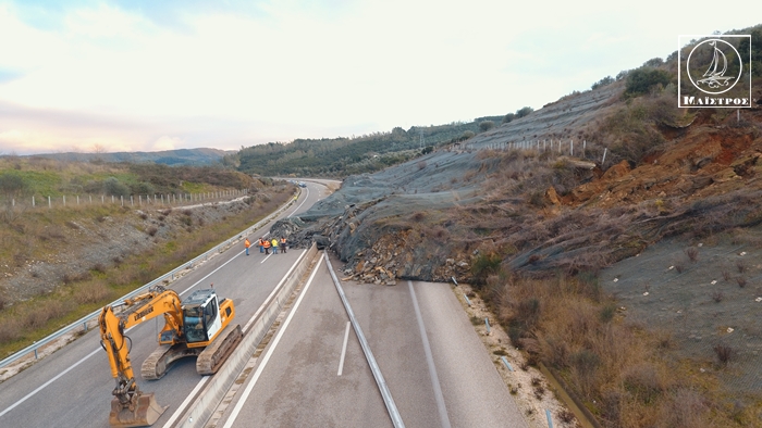 Σε πλήρη εξέλιξη βρίσκεται από τις πρώτες πρωινές ώρες της Δευτέρας σοβαρό φαινόμενο κατολίσθησης στην Ιόνια Οδό, το οποίο έχει προκαλέσει εκτεταμένη κατάληψη του οδοστρώματος από χιλιάδες κυβικά μέτρα χωμάτων και βραχωδών υλικών.