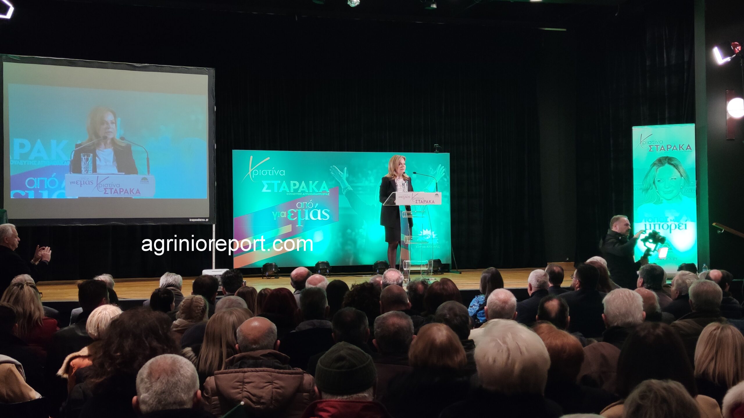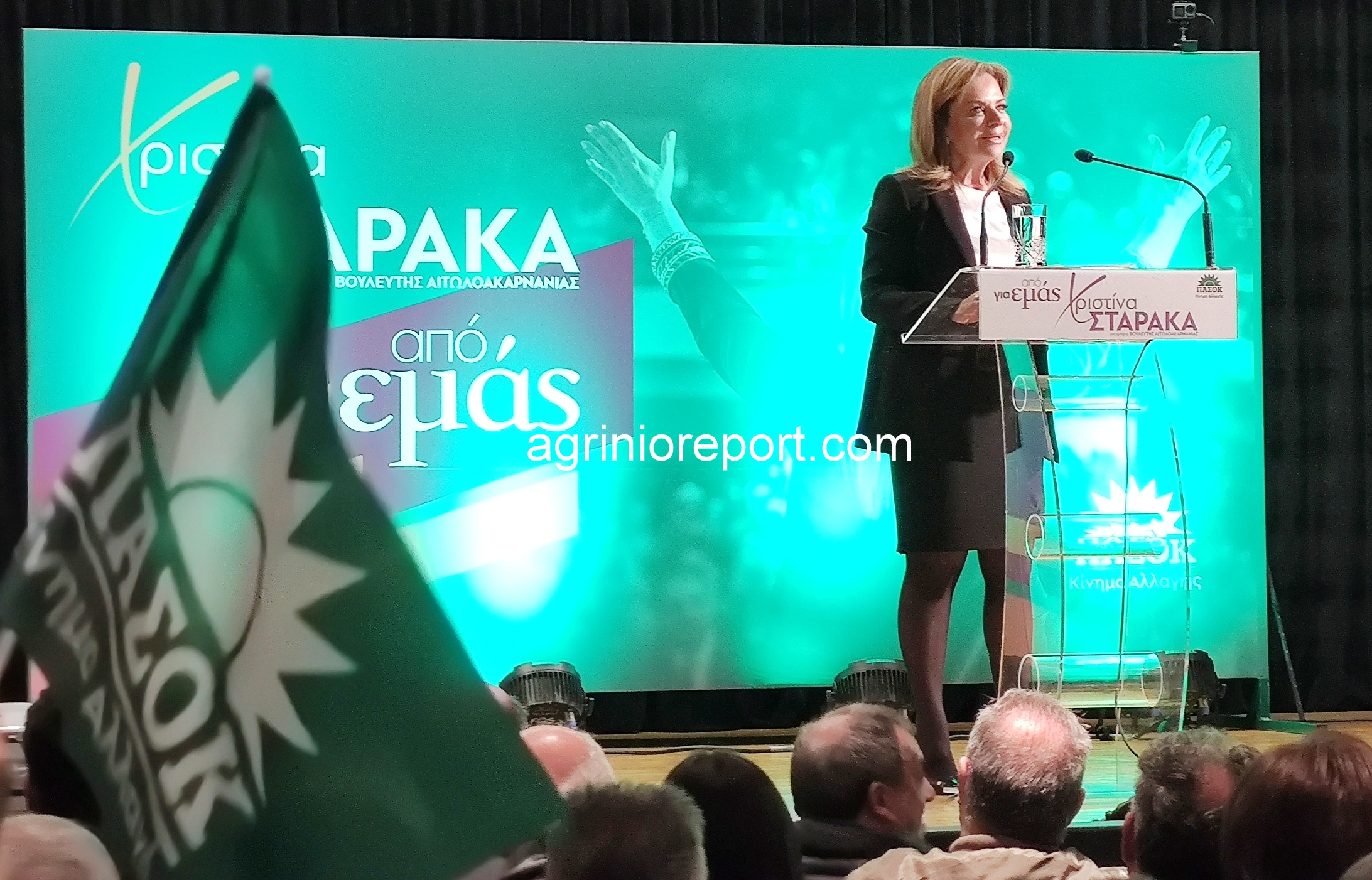 Σε ένα κλίμα ενωτικό, ανανεωμένο, σταθερό με κεντρικό σύνθημα “Ο Τόπος μας Μπορεί με Μία από Εμάς για Εμάς” η υποψήφια Βουλευτής του ΠΑΣΟΚ Χριστίνα Σταρακά μέσα σε μια κατάμεστη αίθουσα αναφέρθηκε αναλυτικά και στοχευμένα σε όλη την την ατζέντα των πολιτικών θεμάτων αλλά και στα προβλήματα της Αιτωλοακαρνανίας, κερδίζοντας το πιο ζεστό χειροκρότημα των παρευρισκομένων.