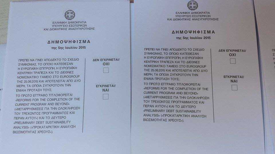 Αυτό είναι ακριβώς που βλέπετε είναι το ψηφοδέλτιο που θα πάρουμε στα χέρια μας, με τα παραπάνω ερωτήματα και καλούμαστε να απαντήσουμε τις δύο πιο πολυσυζητημένες λέξεις της χρονιάς . “Όχι” ή “Ναι” !