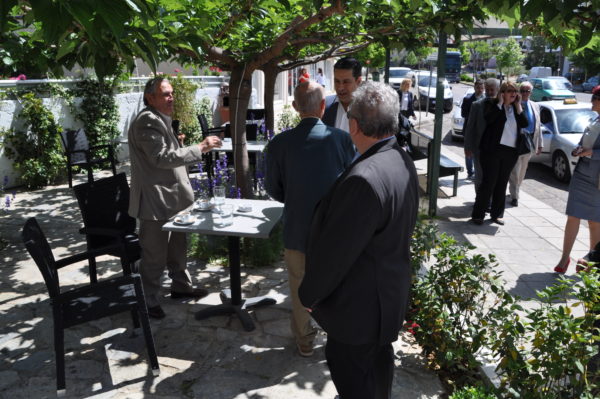 Στην συνέχεια ο Γιώργος Παπαναστασίου αντάλλαξε ευχές με τους κατοίκους του  Αγίου Κωνσταντίνου, συνοδευόμενος από υποψήφιους συμβούλους του Συνδυασμού «Αγρίνιο Νέα Αρχή-Τόπος να Ζεις»  σε κλίμα χαράς και γιορτής.