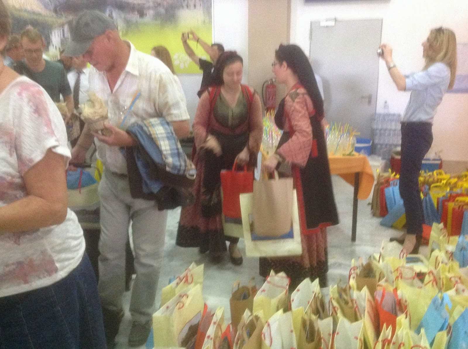 Οι εκπρόσωποι του Δήμου μας μοίρασαν από μια τσάντα που περιείχε μέσα βιβλία από το Δήμο μας όπως το Πόλεις και χωριά του Δήμου Ακτίου Βόνιτσας, το Λεύκωμα της Παλαίρου, το Ανακτόριο και ένα μπουκάλι κρασί.