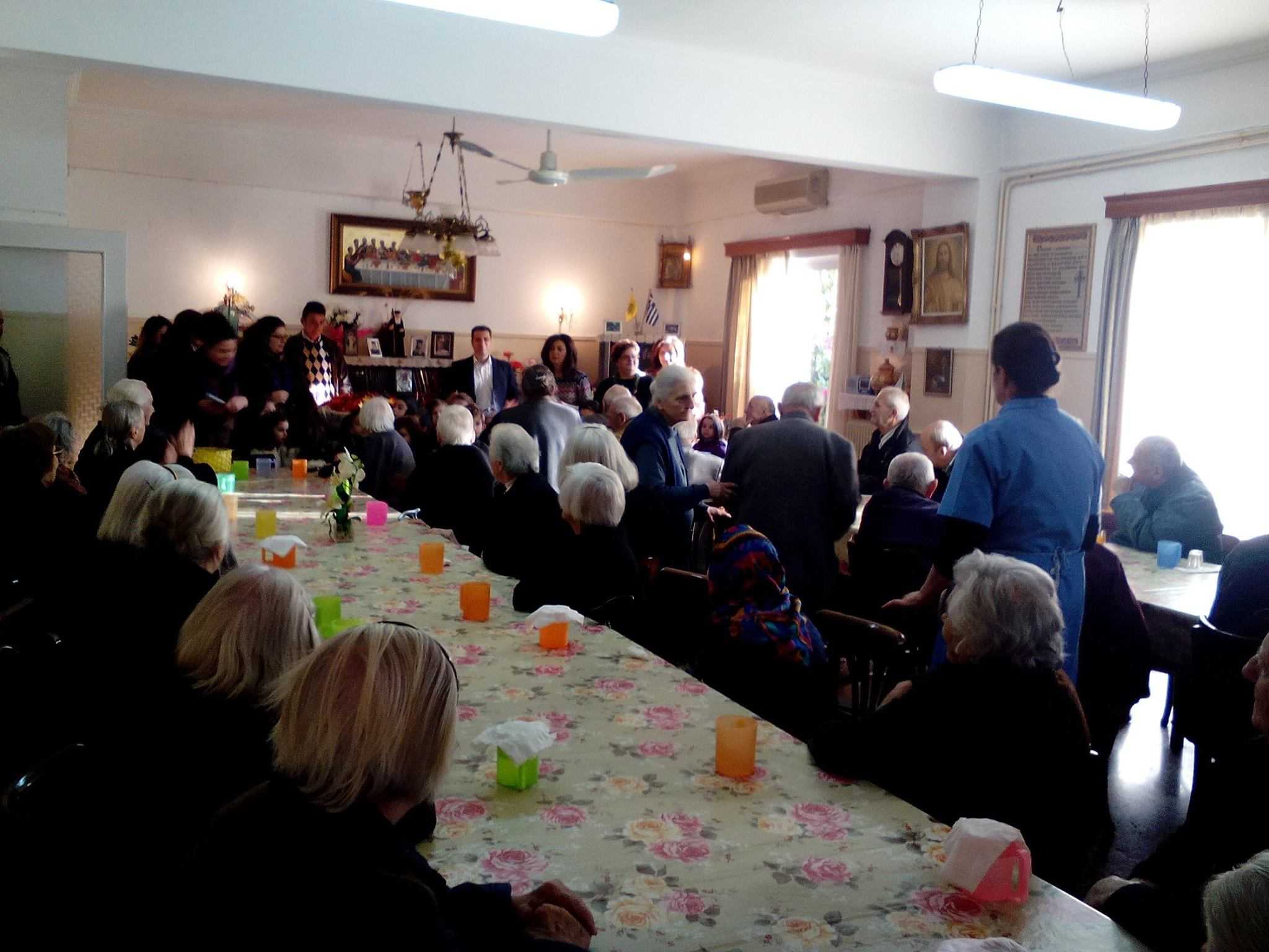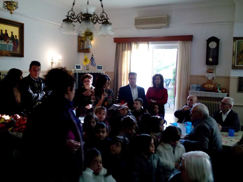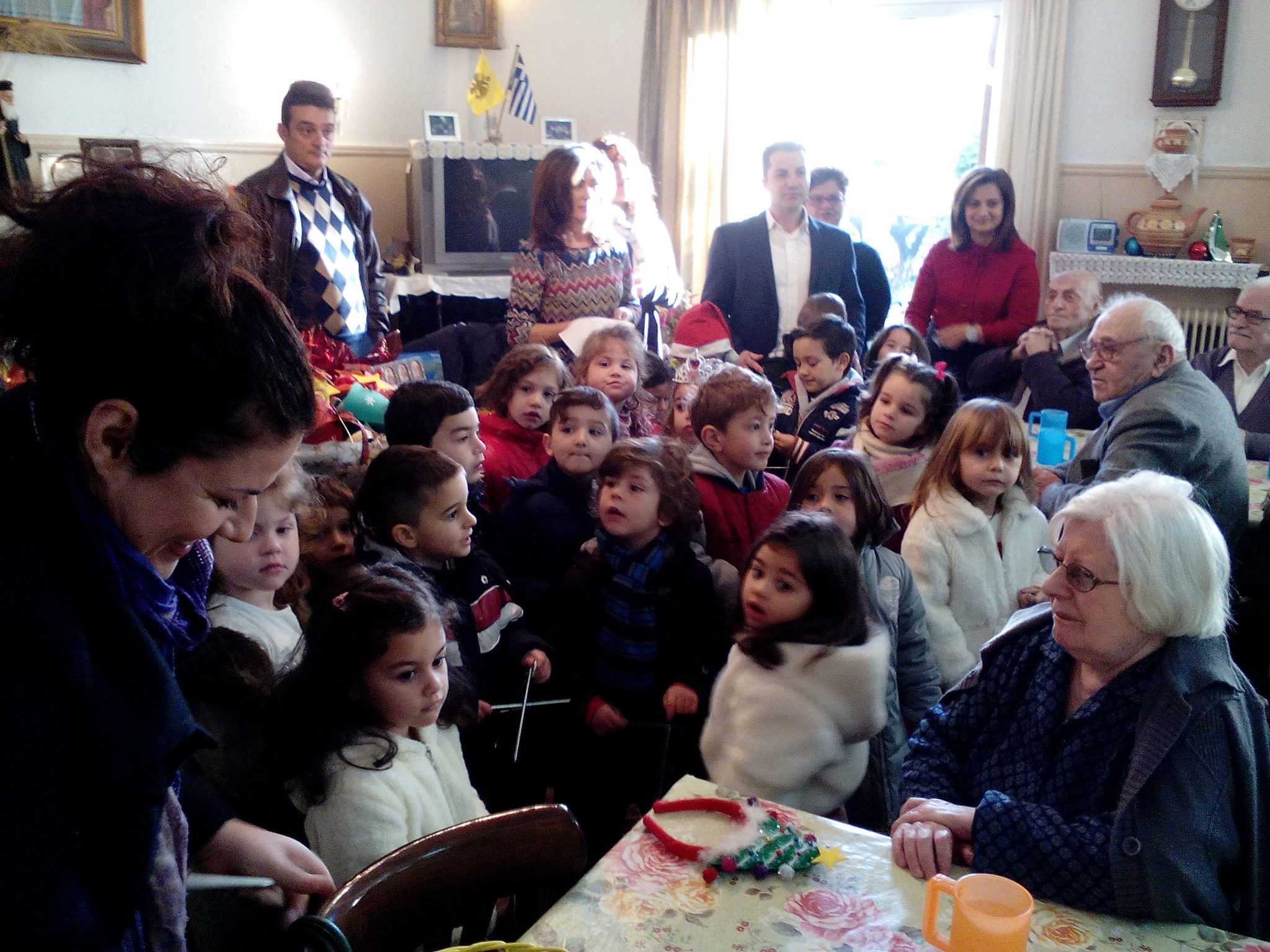 Τα μικρά παιδιά μαζί με τους γονείς και τους εκπαιδευτικούς συγκεντρώθηκαν στο γηροκομείο για να δώσουν μια νότα χαράς και αισιοδοξίας στους ηλικιωμένους τις γιορτινές μέρες που διανύουμε. Τα παιδάκια μίλησαν και έπαιξαν με τους ηλικιωμένους του γηροκομείου και τους πρόσφεραν επίσης διάφορα δωράκια που είχαν κατασκευάσει τα ίδια. Οι ηλικιωμένοι ένιωσαν μεγάλη χαρά και ιδιαίτερη συγκίνηση.Παραβρέθηκαν η διευθύντρια του σχολείου κ. Σταμάτη, η προϊσταμένη των Δημοτικών Παιδικών Σταθμών κ. Κουτσογιάννη Όλγα, ο δημοτικός σύμβουλος και Αντιπρόεδρος του Διοικητικού Συμβουλίου των ΚΟΙΠΑ κ. Βασίλης Φωτάκης, οι νηπιαγωγοί κ. Νικολοπούλου Χριστίνα και κ. Αγγελοκωστοπούλου Γεωργία καθώς και εκπρόσωποι γονέων.