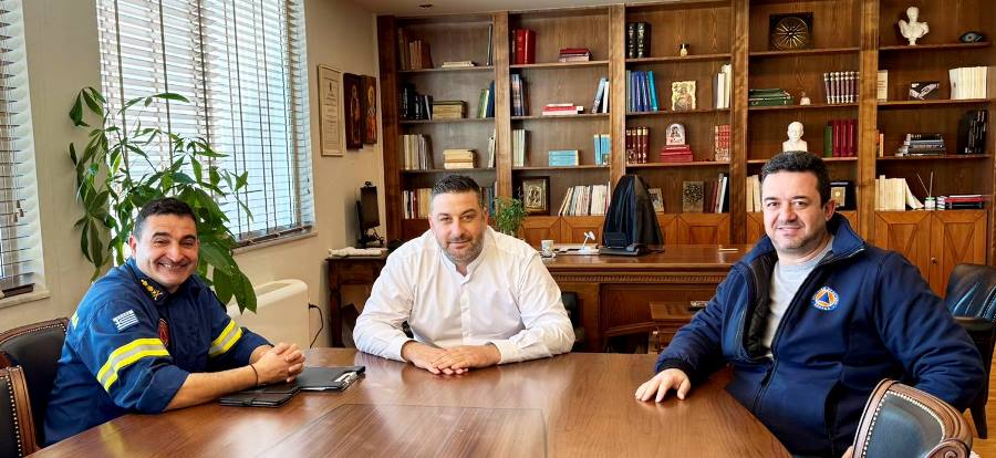 Η συνάντηση έγινε με αφορμή την ανάληψη των νέων καθηκόντων του κ. Πετράκη και συμμετείχε επίσης και ο Προϊστάμενος της Πολιτικής Προστασίας, Γιώργος Παπαδόπουλος.