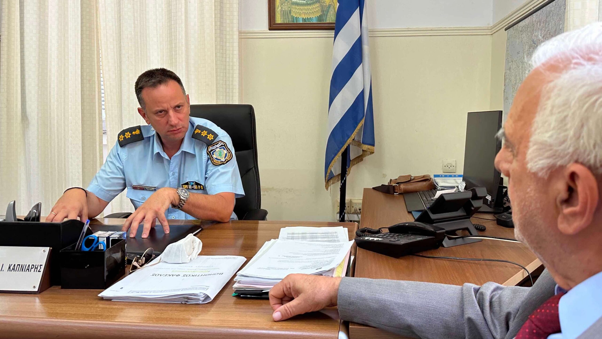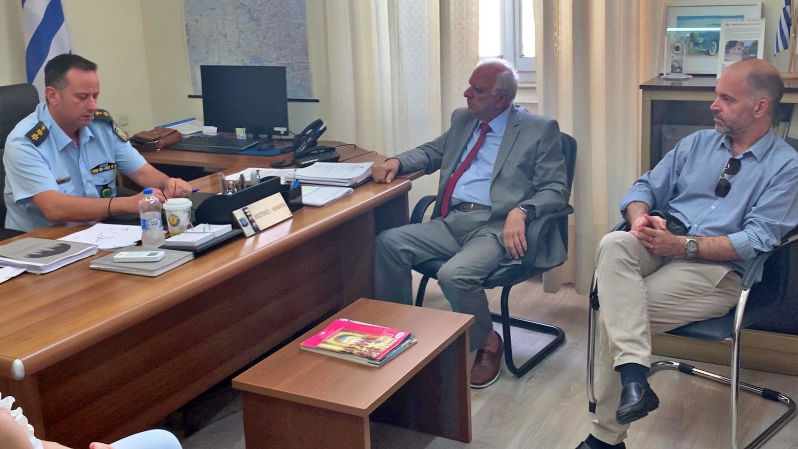 Συνεχίζοντας τον κύκλο επαφών με Φορείς και Αρχές του Δήμου, αντιπροσωπεία του συνδυασμού “ΑΝΑΠΤΥΞΗ ΓΙΑ ΟΛΟΥΣ” συναντήθηκε σήμερα, Τετάρτη, 26 Ιουλίου 2023, με τον Διευθυντή της Αστυνομικής Διεύθυνσης Αιτωλίας, Απόστολο Καπνιάρη.