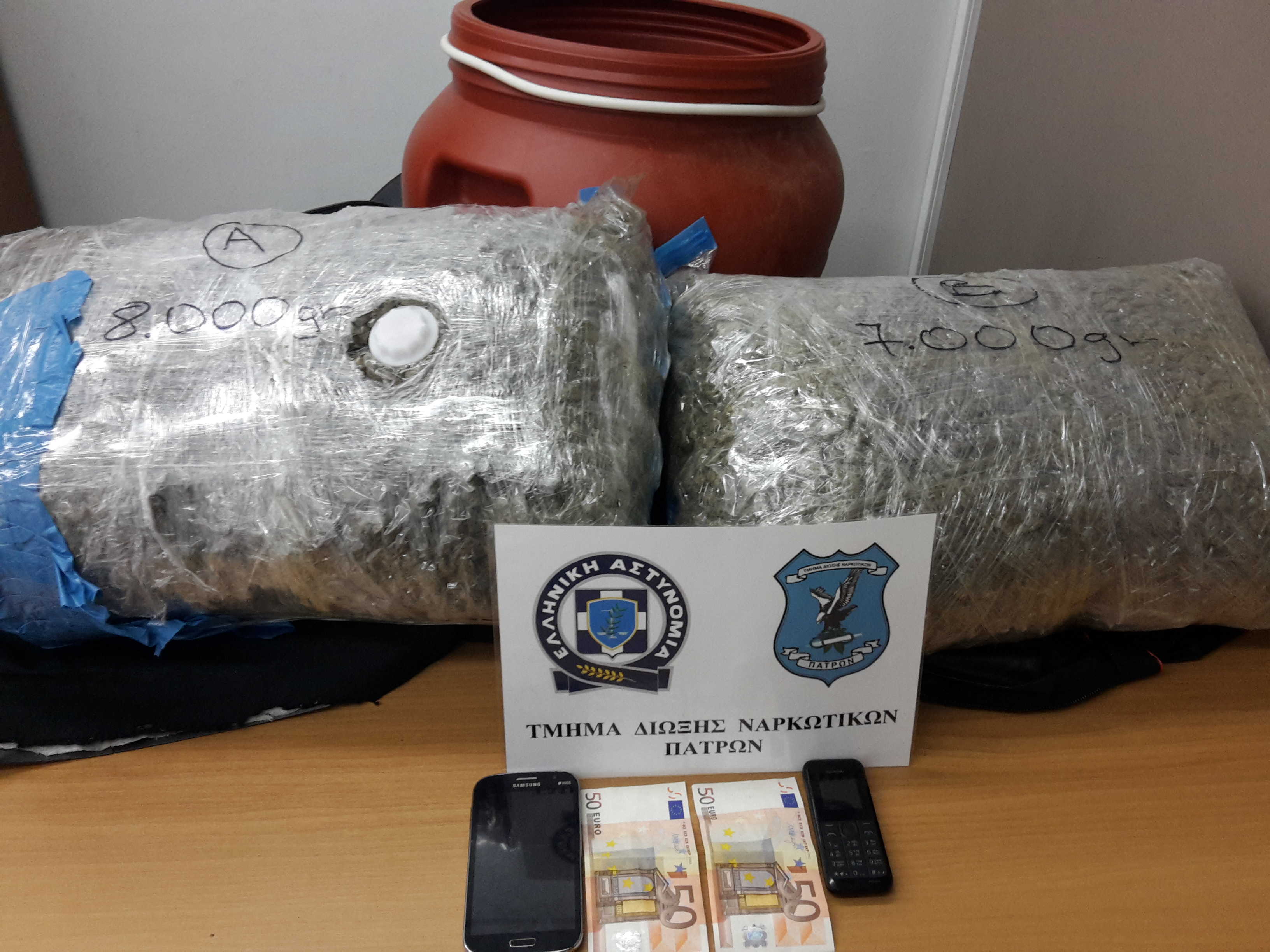 Ειδικότερα, ο 32χρονος μετέφερε με αυτοκίνητο, από περιοχή των Ιωαννίνων στην Πάτρα, δύο ταξιδιωτικούς σάκους που περιείχαν δύο συσκευασίες με κάνναβη συνολικού βάρους δεκαπέντε κιλών.