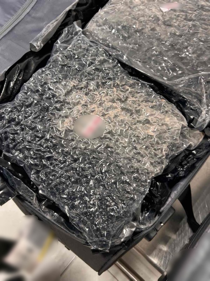 Από τον έλεγχο που πραγματοποιήθηκε στην αποσκευή του στο χώρο των αφίξεων, κατελήφθη να κατέχει εντός της αποσκευής του -31- νάιλον συσκευασίες, που περιείχαν συνολικά -32- κιλά και -600- γραμμάρια ακατέργαστης κάνναβης υδροπονικής καλλιέργειας (skunk).