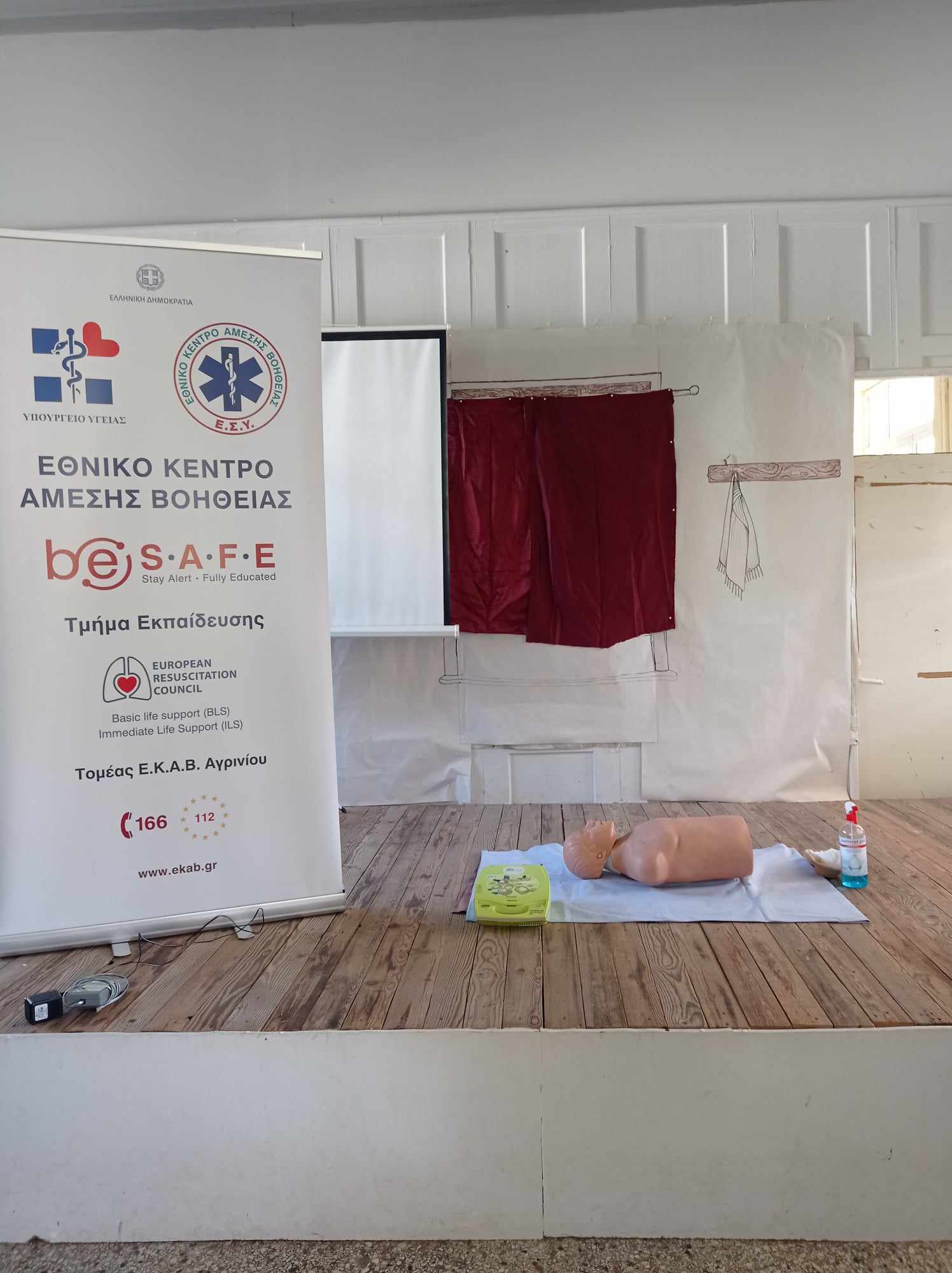 Έτσι, το πρωί της Δευτέρας, 26 Ιουνίου 2023, πραγματοποιήθηκε εκδήλωση με διασώστες του ΕΚΑΒ, οι οποίοι μετέδωσαν τις επαγγελματικές τους γνώσεις και μοιράστηκαν την εμπειρία τους με πολίτες, μαθαίνοντάς τους πώς να αναγνωρίζουν μια ανακοπή και να πραγματοποιούν ΚΑΡΠΑ και ανάνηψη με τη χρήση του απινιδωτή καθώς και τις απαιτούμενες ενέργειες που πρέπει να κάνουν σε περίπτωση πνιγμονής και τη θέση ανάνηψης.