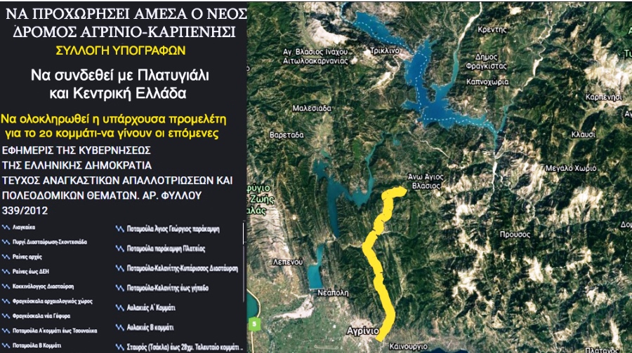 «Πλατυγιάλι σύνδεση με Ιόνια οδό – Αγρίνιο – Καρπενήσι – Λαμία (Α14): σημαντικός άξονας τόσο για την ανάπτυξη του Πλατυγιαλίου ως κόμβου συνδυασμένων μεταφορών, όσο και για την προοπτική τουριστικής ανάπτυξης της ορεινής περιοχής της Ακαρνανίας και της Ευρυτανίας, που θα συνδέει δύο πελάγη το Ιόνιο και το Αιγαίο».