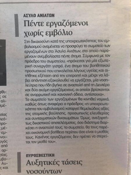 Δεν μπορει η νομοθεσία να λεει στον εργαζόμενο ,“σε στέλνω σπίτι σου για να σε προστατέψω από τον ιό αλλά και να μην τον μεταδόσεις” ,και την ίδια ώρα να τον καταδικάζει σε ασιτία και οικονομικό αποκλεισμό ,επειδή φοβάται, είναι δύσπιστος ,επειδή όλοι εμείς αποτύχαμε να τον πείσουμε πως ο εμβολιασμός είναι μια πράξη αλληλεγγύης.