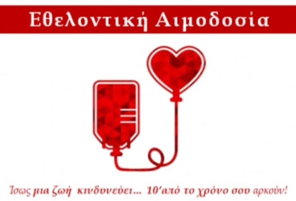 Δίνουμε το παρόν στην εθελοντική αιμοδοσία της Κυριακής και το παράδειγμα σε όλους τους υγιείς ανθρώπους πως 10 λεπτά από τον χρόνο μας δίνουν χωρίς πόνο ζωή σε ανθρώπους που το έχουν πραγματικά ανάγκη.