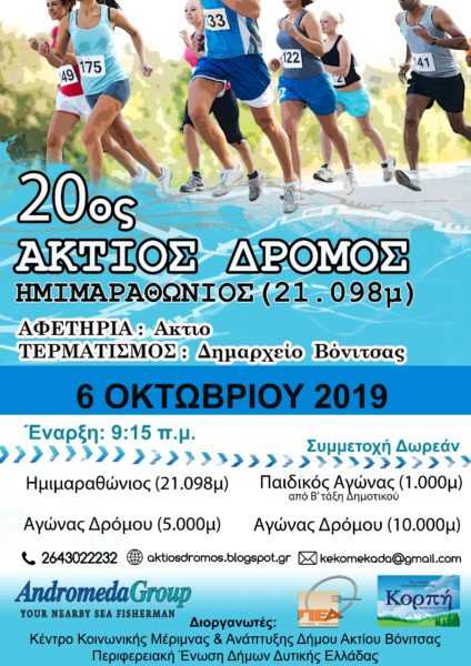 Την Κυριακή 6 Οκτωβρίου ο Δήμος Ακτίου-Βόνιτσας είναι έτοιμος να υποδεχθεί τους αθλητές δρομείς για τον 20ο Άκτιο Ημιμαραθώνιο Δρόμο.