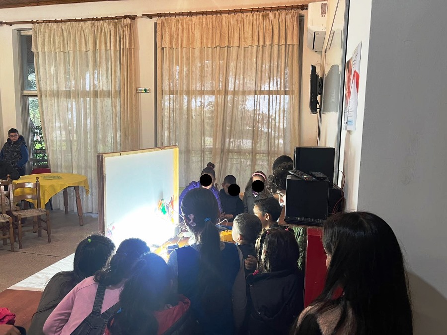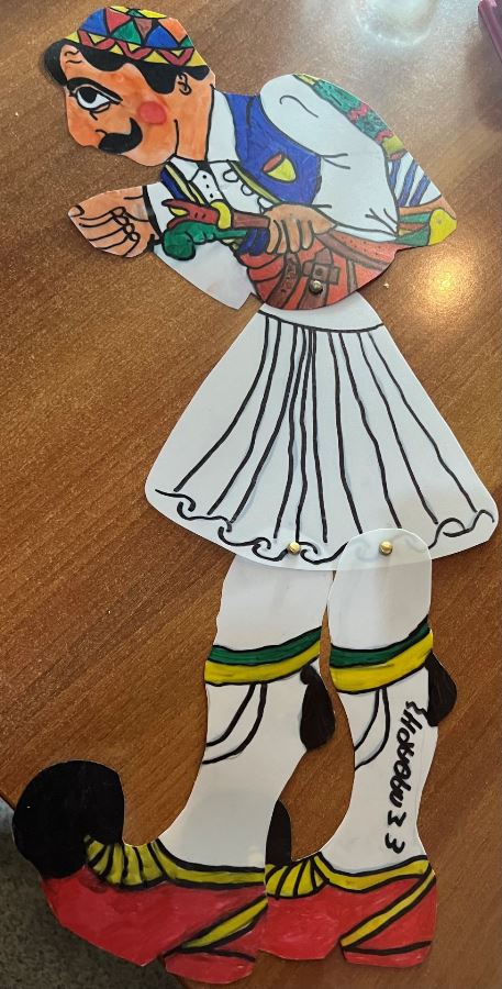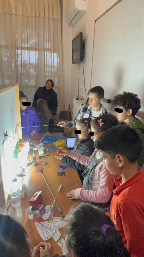 Τελειώνοντας το έργο, τα παιδιά ενθουσιασμένα πέρασαν πίσω από τον μπερντέ, πήραν στα χέρια τους τις φιγούρες και έγιναν και αυτά για μια στιγμή καραγκιοζοπαίχτες.