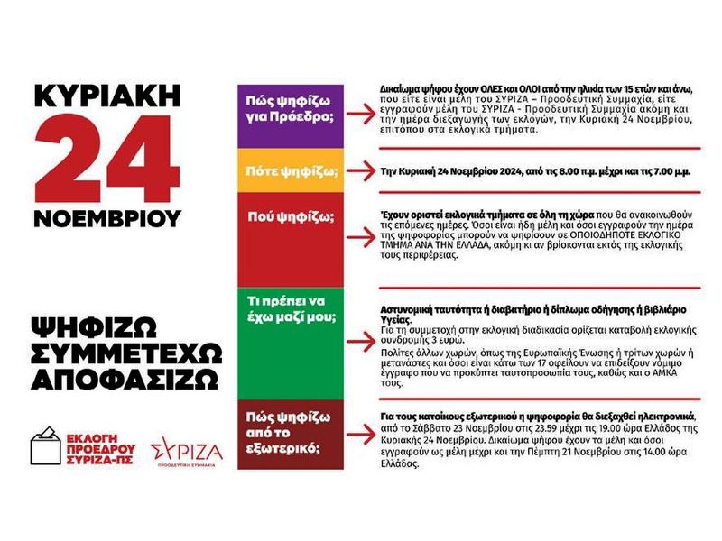 Δικαίωμα ψήφου έχουν ΟΛΕΣ και ΟΛΟΙ από την ηλικία των 15 ετών και άνω, που είτε είναι μέλη του ΣΥΡΙΖΑ – Προοδευτική Συμμαχία, είτε εγγραφούν την ημέρα διεξαγωγής των εκλογών.