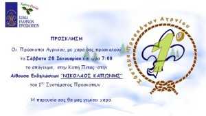 Το Σάββατο στις 28 Ιανουαρίου στις 7 το απόγευμα το 1ο Σύστημα Προσκόπων σας προσκαλεί στην κοπή της πρωτοχρονιάτικης πίτας στην αίθουσα εκδηλώσεων “Νικόλαος Καπώνης”.
