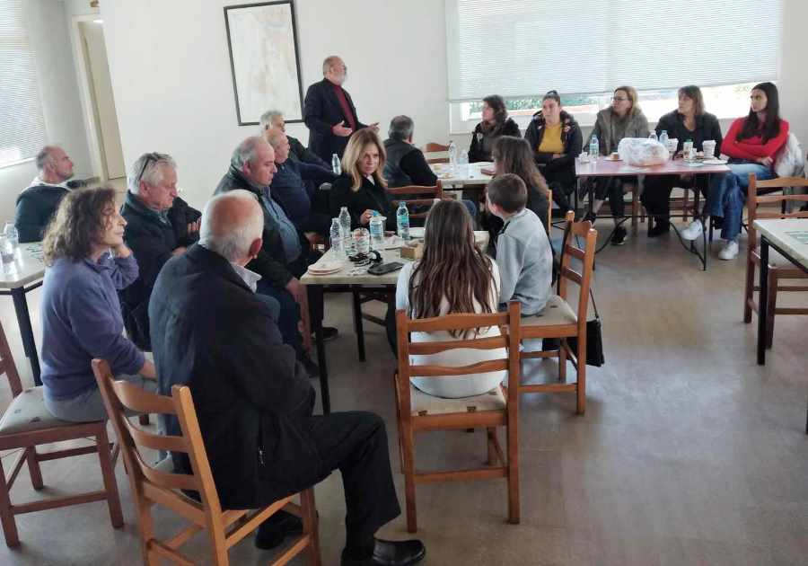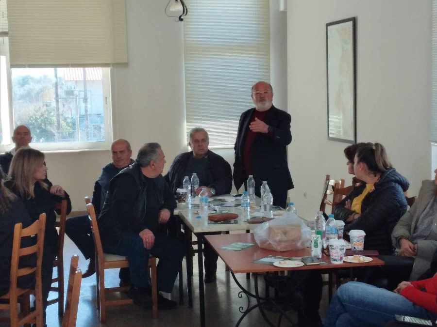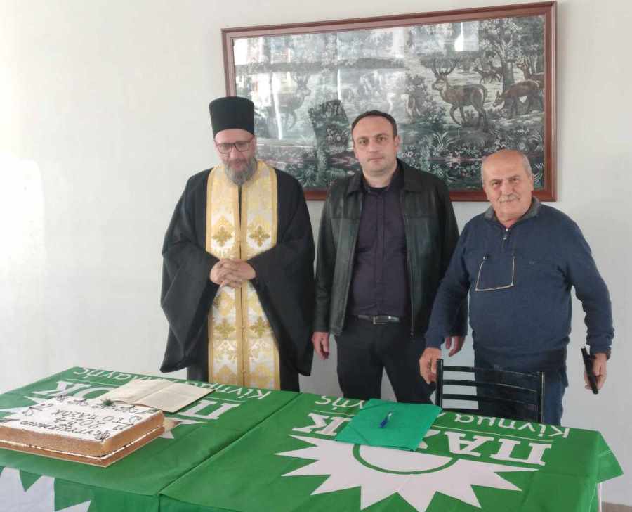 Την πίτα έκοψε και μοίρασε ο Συντονιστής της Τ.Ο Σπύρος Χαντζάρας, παρουσία του πάτερ Ευφρόσυνου.