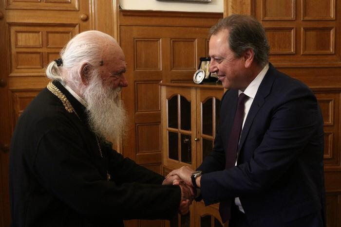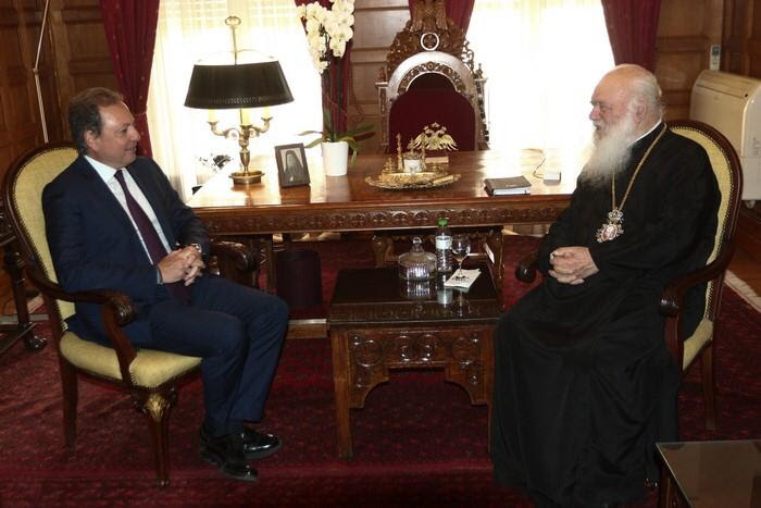 Κατά τη συνάντηση στο γραφείο του Αρχιεπισκόπου στην Ιερά Σύνοδο, συζητήθηκαν θέματα κοινού ενδιαφέροντος, με έμφαση σε ζητήματα κοινωνικής αλληλεγγύης.