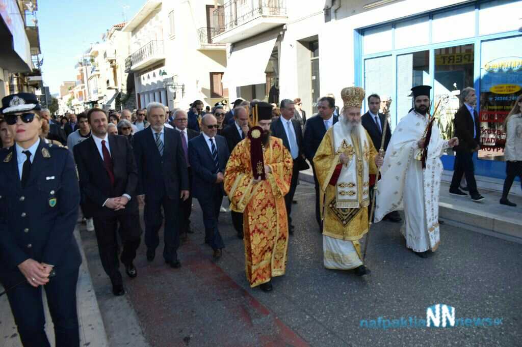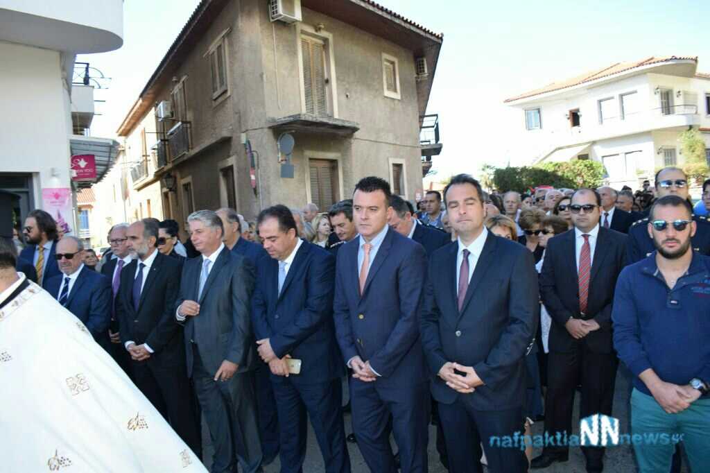 Στην λιτανεία συμμετείχαν ο βουλευτής Αιτωλοκαρνανίας Δημήτρης Κωνσταντόπουλος, ο περιφερειάρχης δυτικής Ελλάδας Απόστολος Κατσιφάρας , ο δήμαρχος Ναυπακτίας Τάκης Λουκόπουλος, ο πρώην δήμαρχος Ναυπακτίας Γιάννης Μπουλες , ο πρόεδρος του δημοτικού συμβουλίου Θωμάς Κοτρωνιάς, οι αντιδήμαρχοι Γιώργος Σιαμαντάς ,Αντώνης Φράγκος καθώς και δημοτικοί σύμβουλοι.