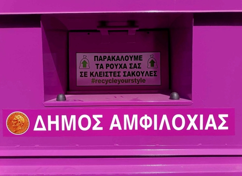Ο Δήμος Αμφιλοχίας αξιοποιώντας το πρόγραμμα διαχείρισης κλωστοϋφαντουργικών προϊόντων (συλλογή, μεταφορά και διάθεση) της εταιρείας EAST WEST GREECE, προχώρησε στην τοποθέτηση των πρώτων κάδων ανακύκλωσης ενδυμάτων και υποδημάτων σε κεντρικά σημεία του Δήμου.
