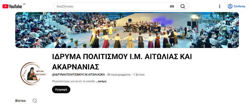 Η Ιερά Μητρόπολις Αιτωλίας και Ακαρνανίας προσκαλεί όλους να επισκεφθούν και να εγγραφούν στο επίσημο κανάλι της στο YouTube, στηρίζοντας αυτή τη σύγχρονη προσπάθεια ενημέρωσης και προβολής της πνευματικής και πολιτιστικής ζωής του τόπου μας.
