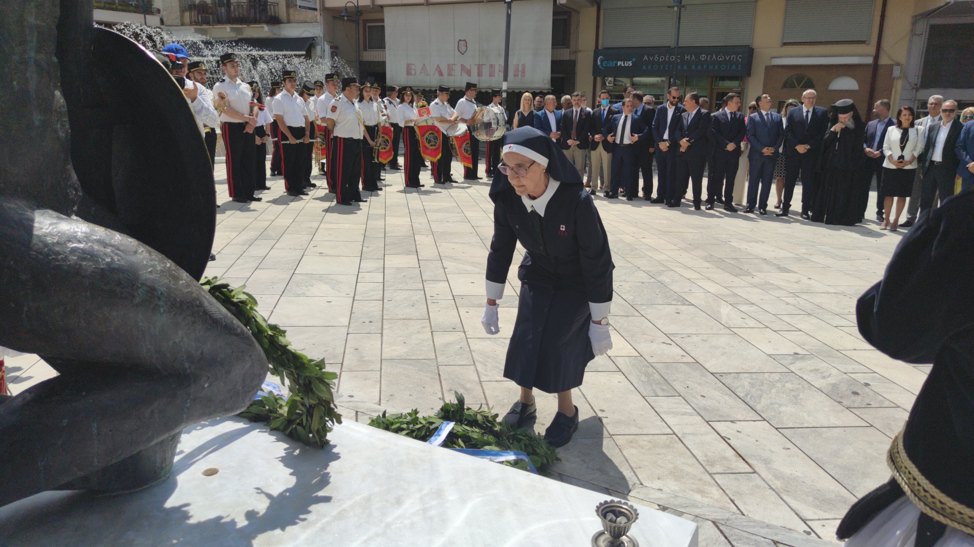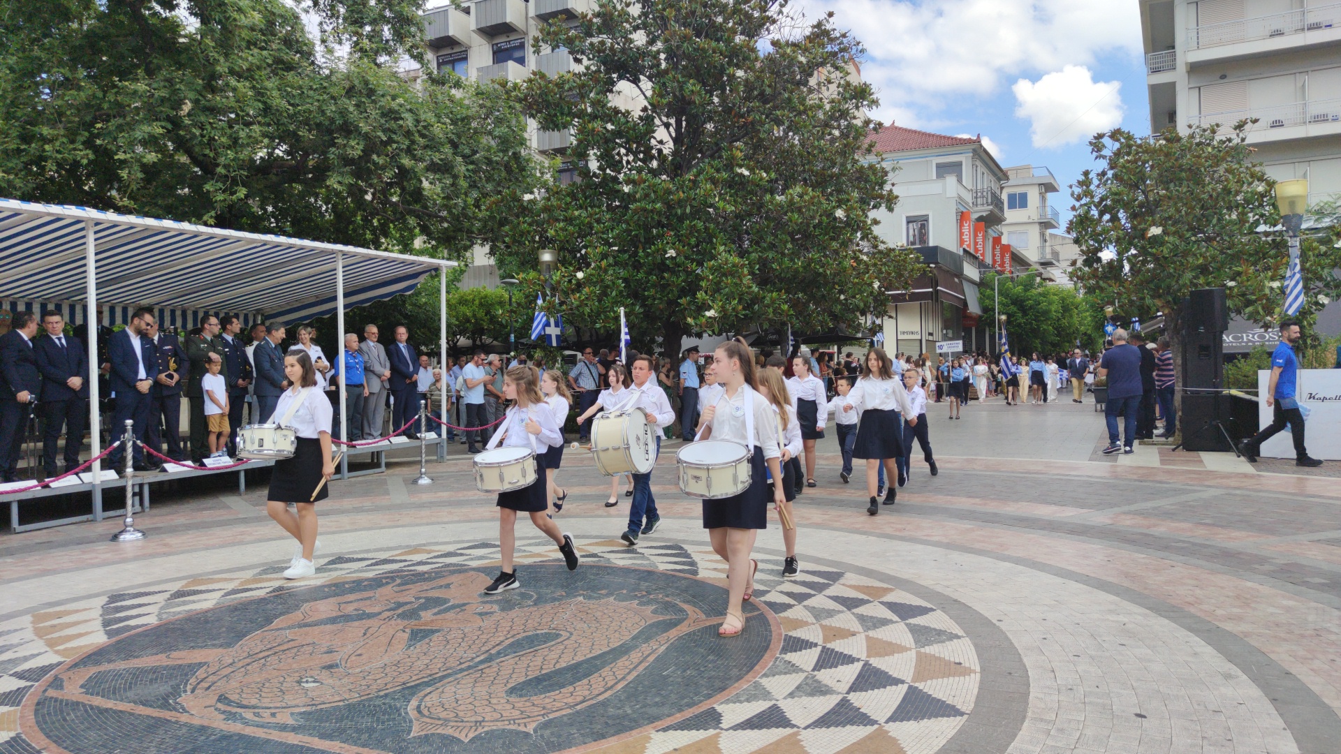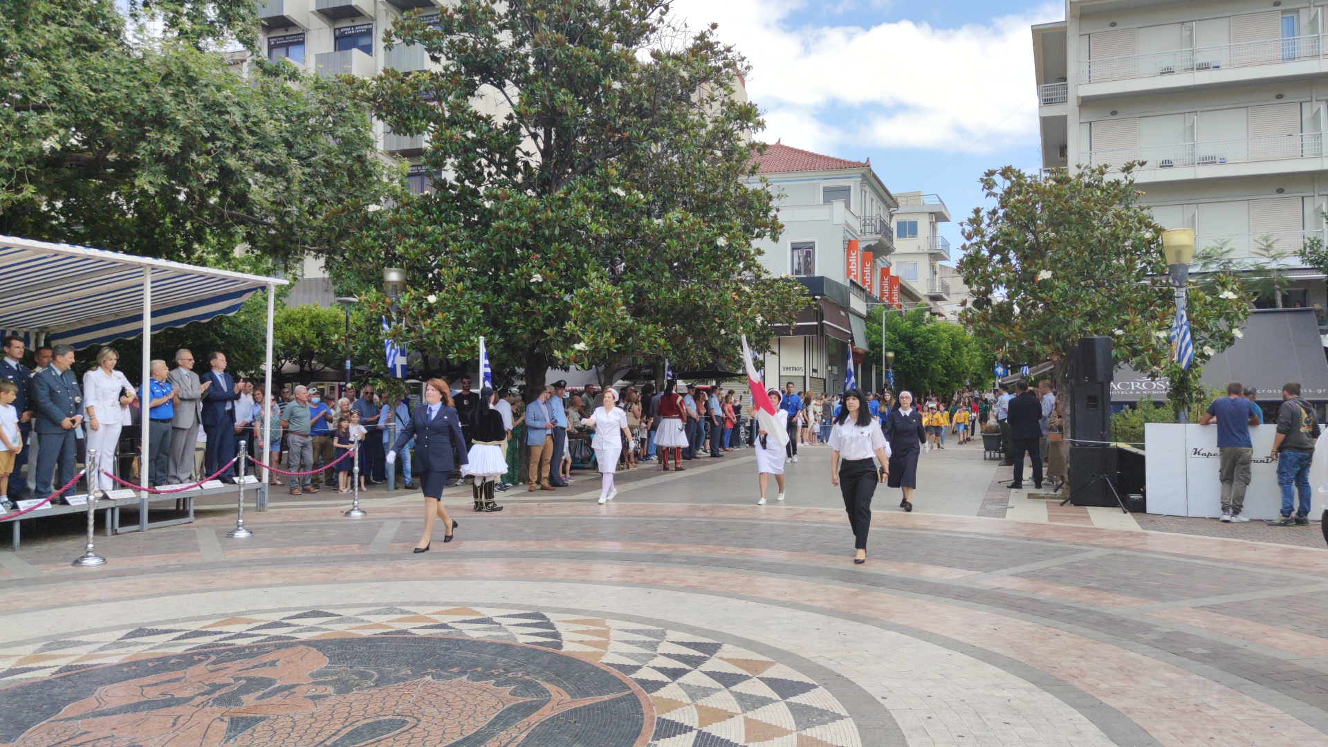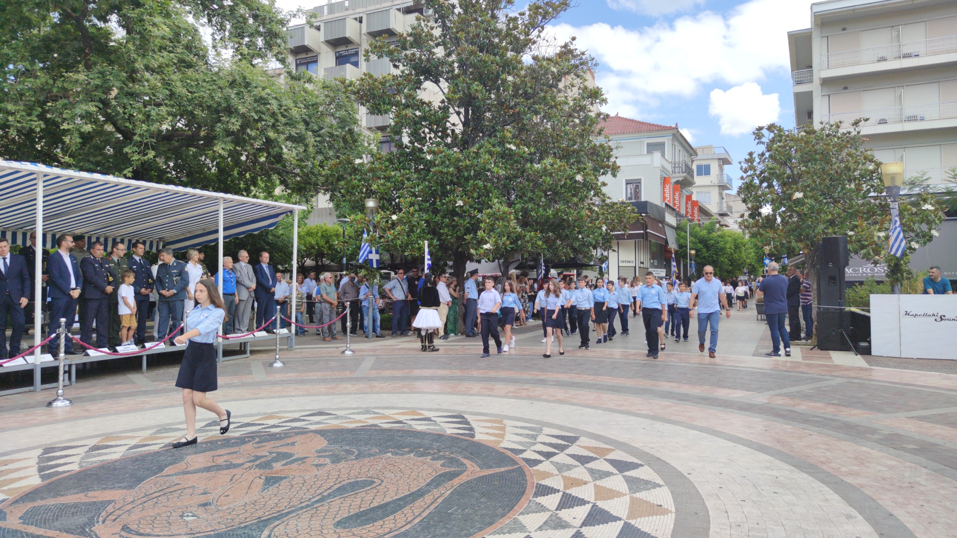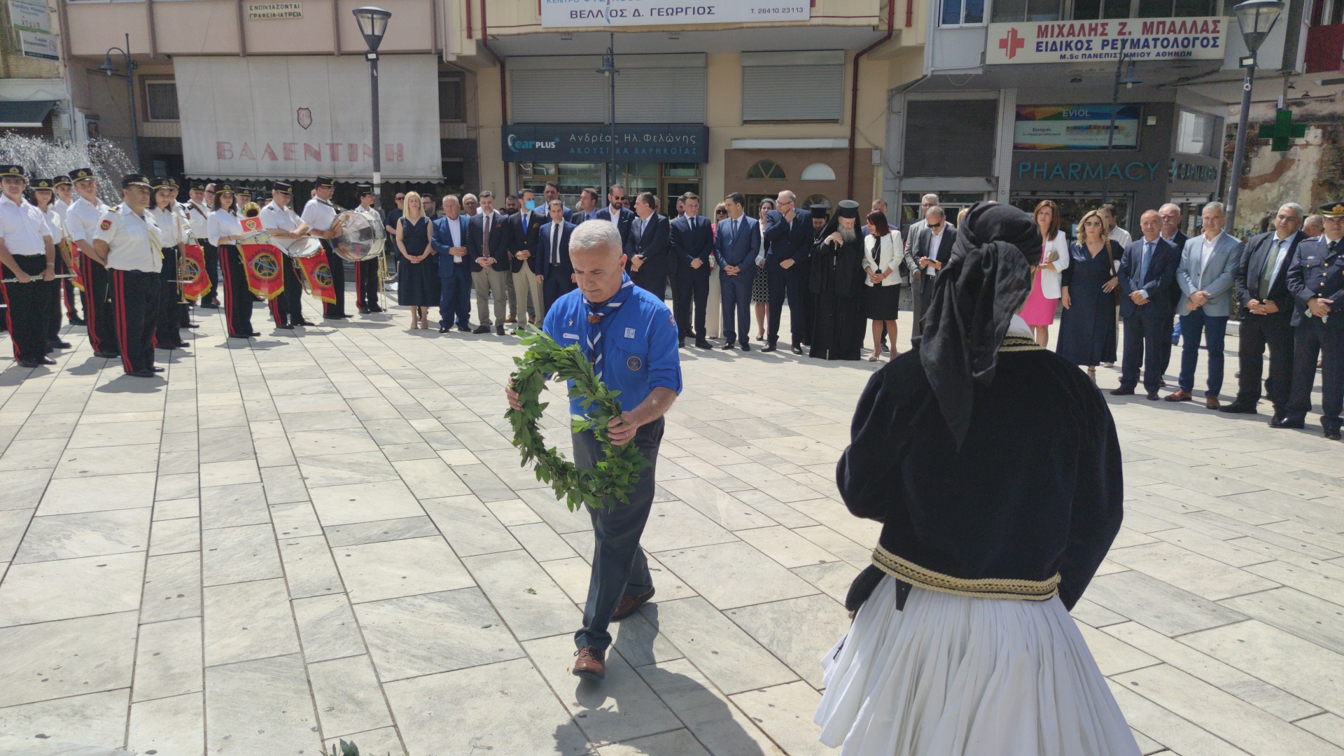 Ακολούθησε επιμνημόσυνη δέηση και κατάθεση στεφάνων στο Μνημείο των Πεσόντων στην Πλατεία Μαρίας Δημάδη και η μαθητική παρέλαση επί της οδού Παπαστράτου, Πλατείας Δημοκρατίας, πεζοδρόμου Χαρ. Τρικούπη.