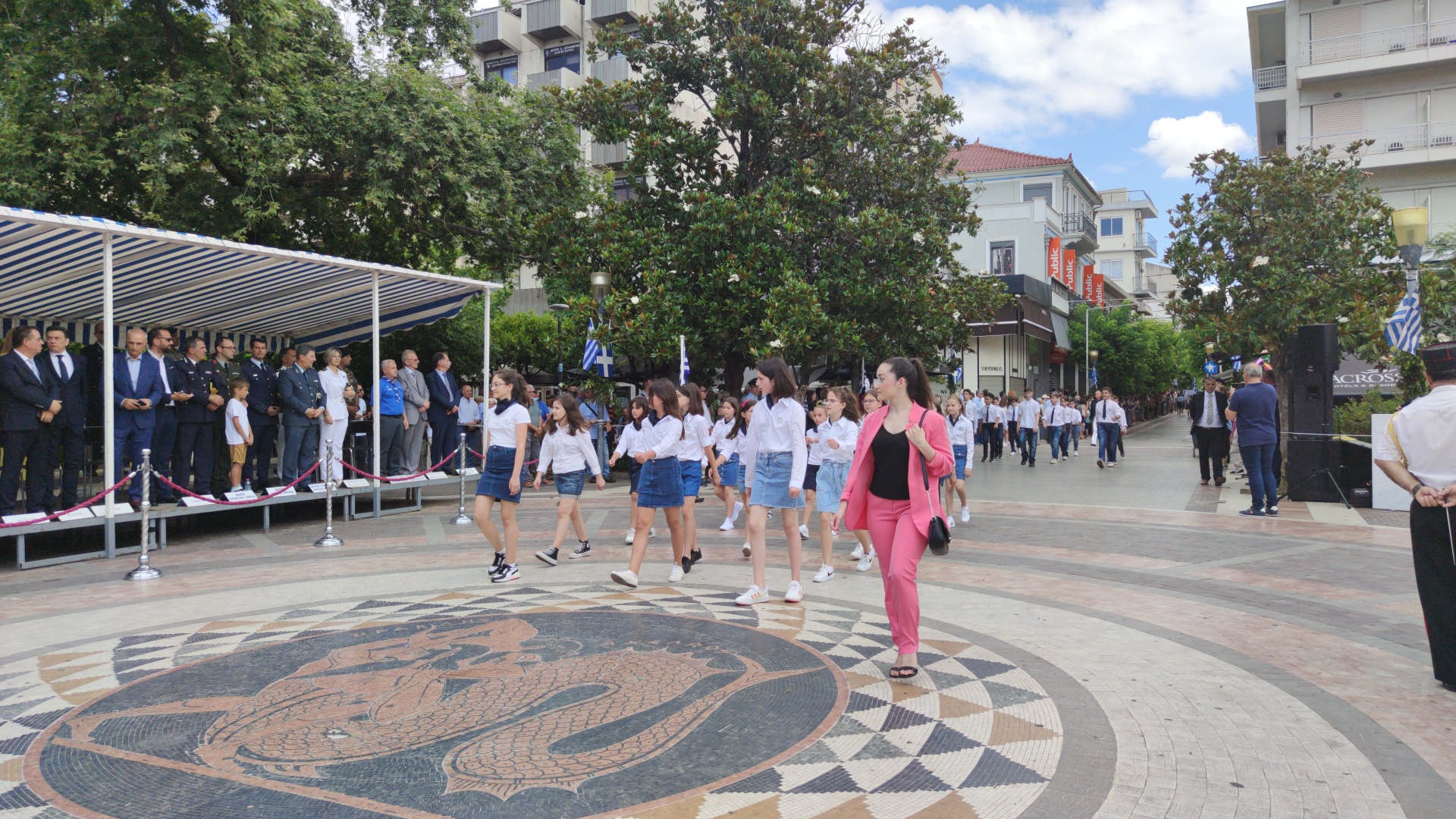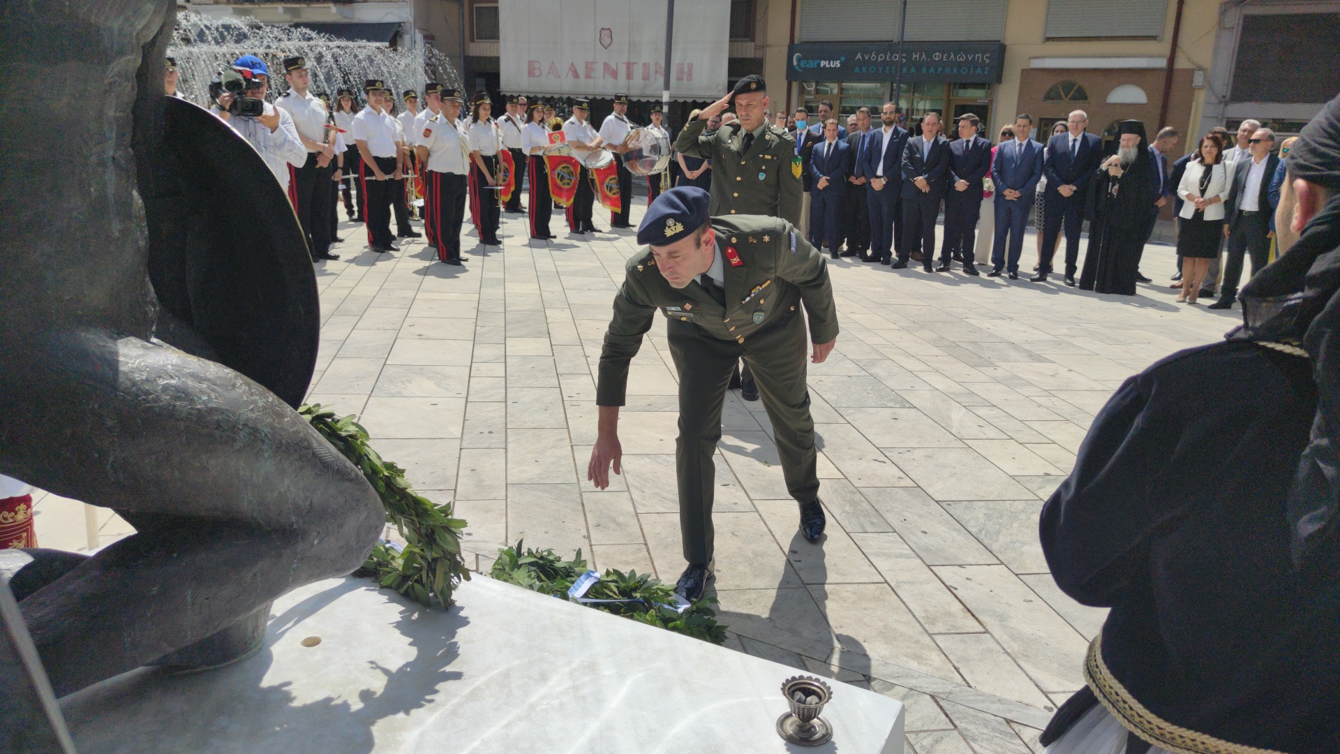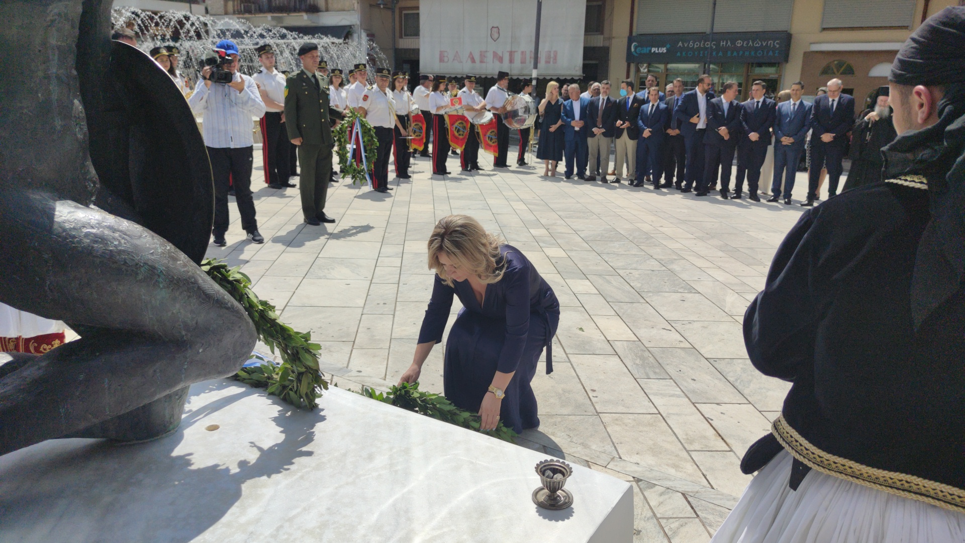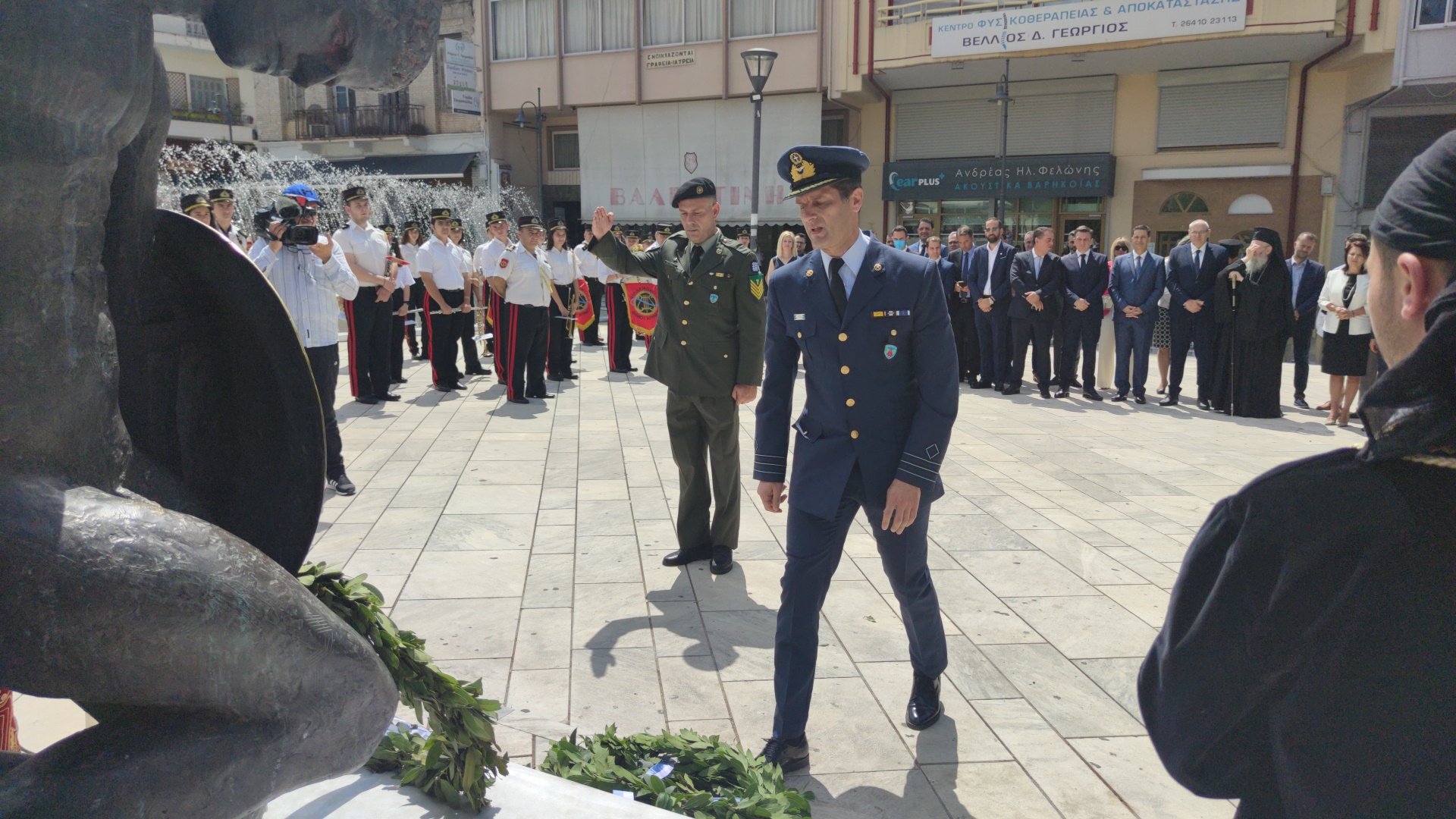 Ακολούθησε επιμνημόσυνη δέηση και κατάθεση στεφάνων στο Μνημείο των Πεσόντων στην Πλατεία Μαρίας Δημάδη και η μαθητική παρέλαση επί της οδού Παπαστράτου, Πλατείας Δημοκρατίας, πεζοδρόμου Χαρ. Τρικούπη.