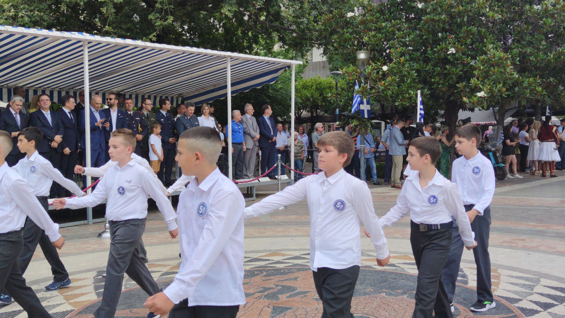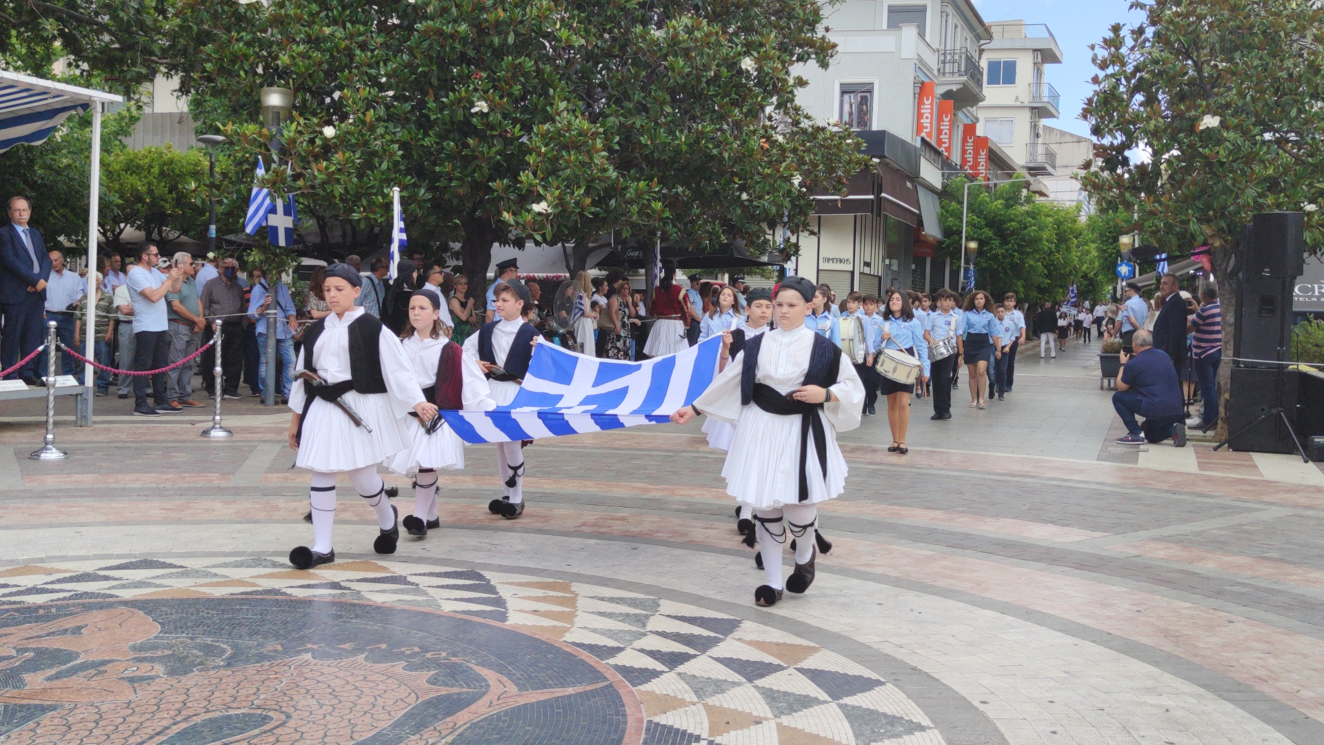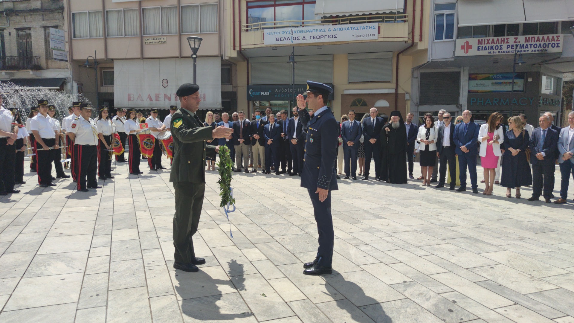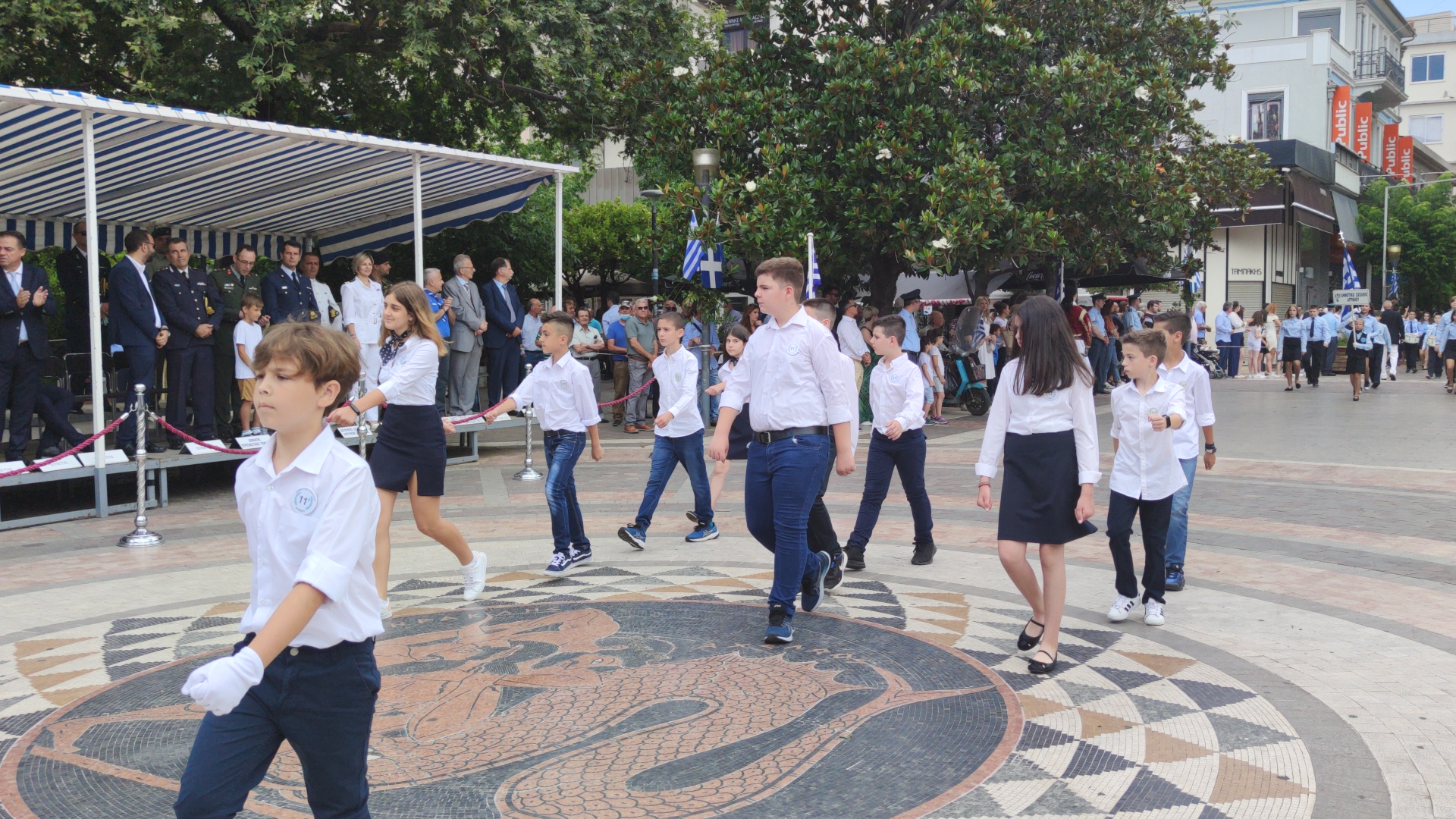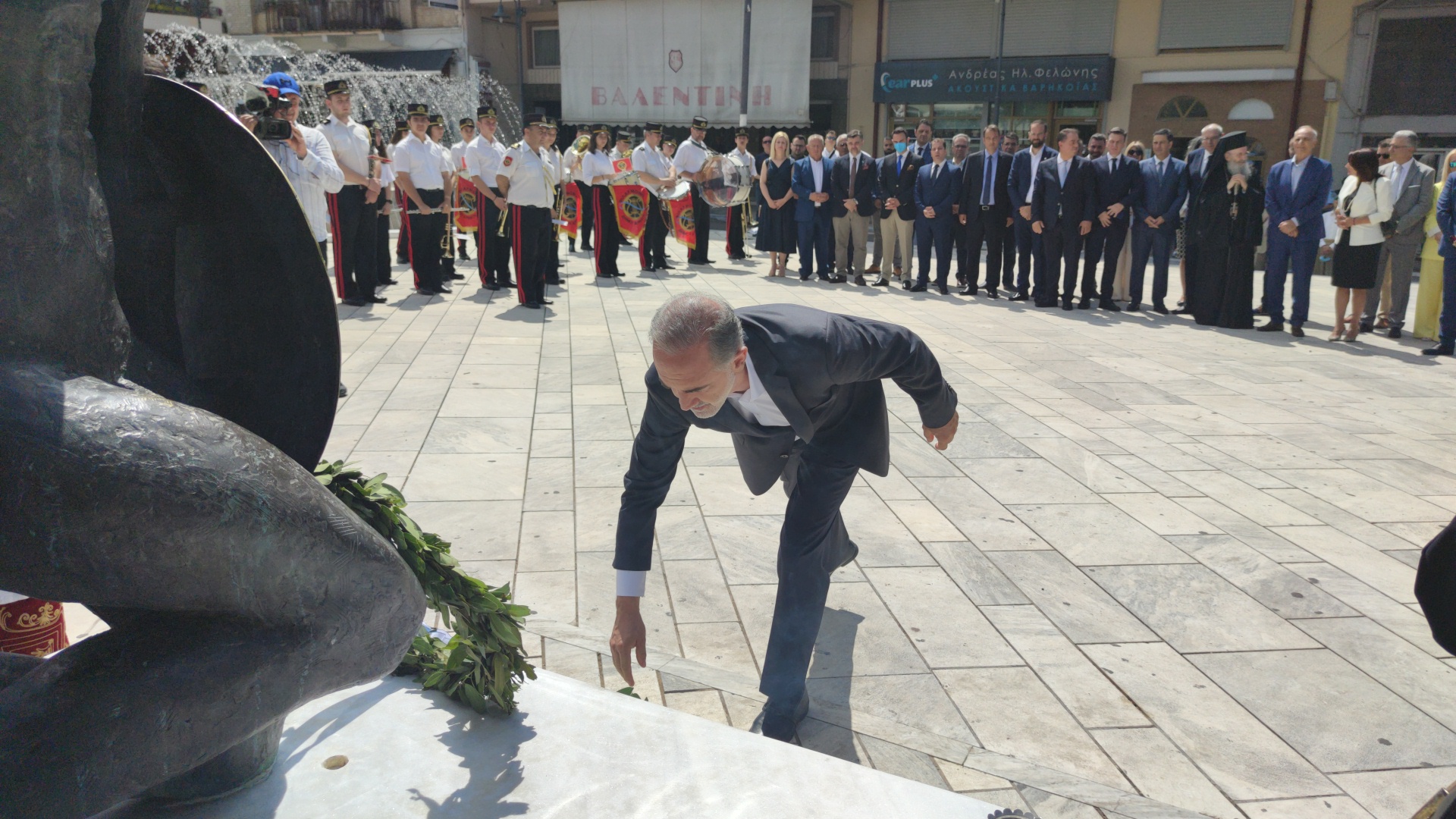 Ακολούθησε επιμνημόσυνη δέηση και κατάθεση στεφάνων στο Μνημείο των Πεσόντων στην Πλατεία Μαρίας Δημάδη και η μαθητική παρέλαση επί της οδού Παπαστράτου, Πλατείας Δημοκρατίας, πεζοδρόμου Χαρ. Τρικούπη.