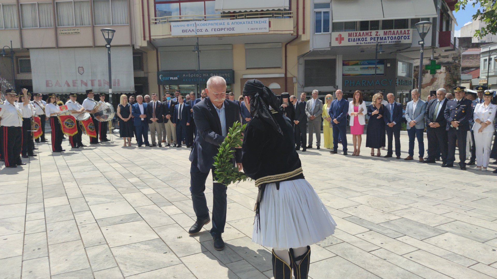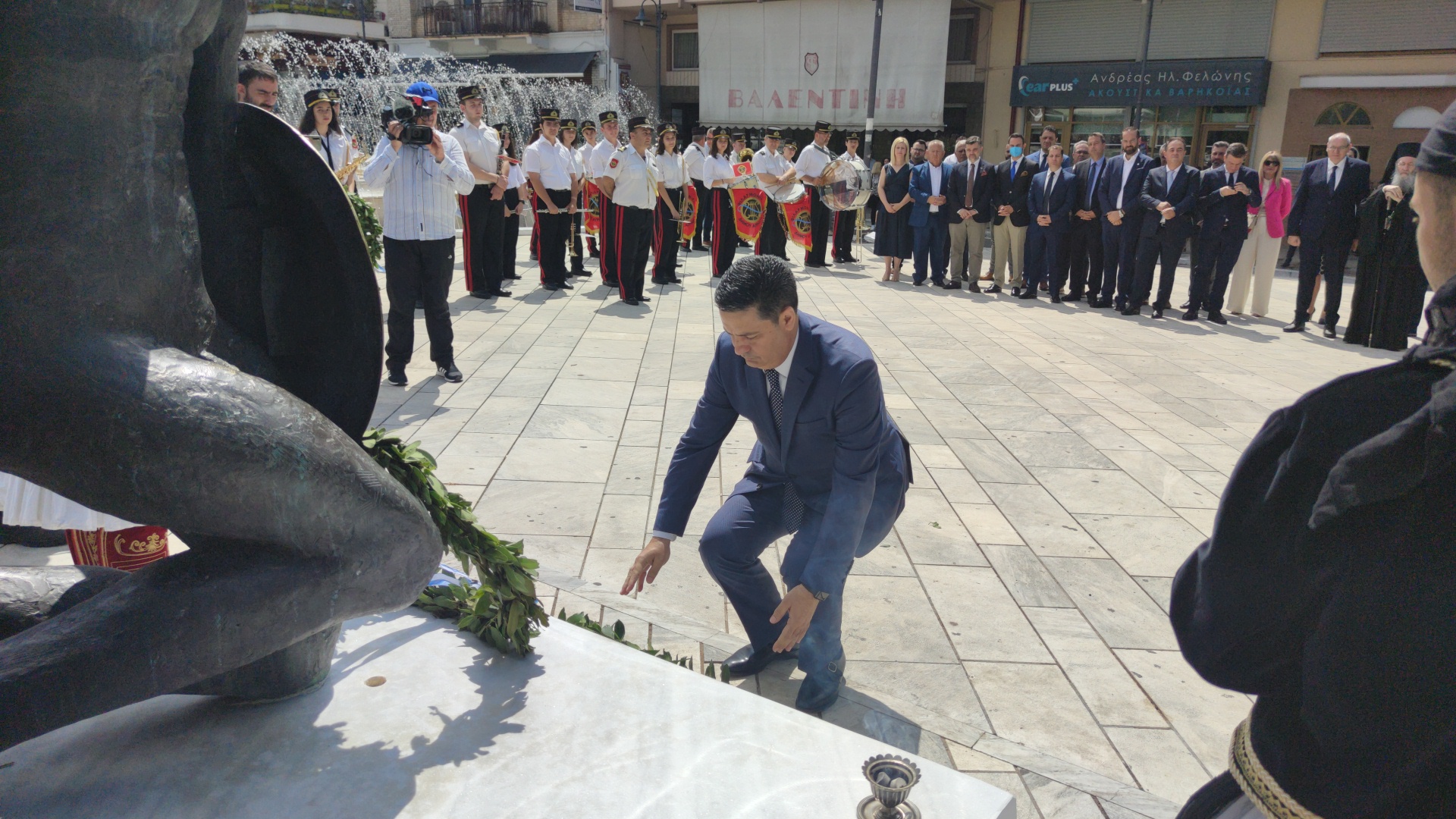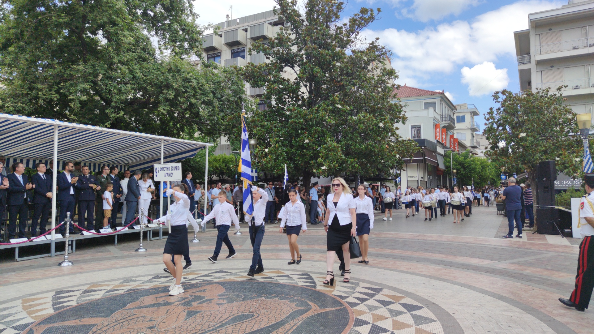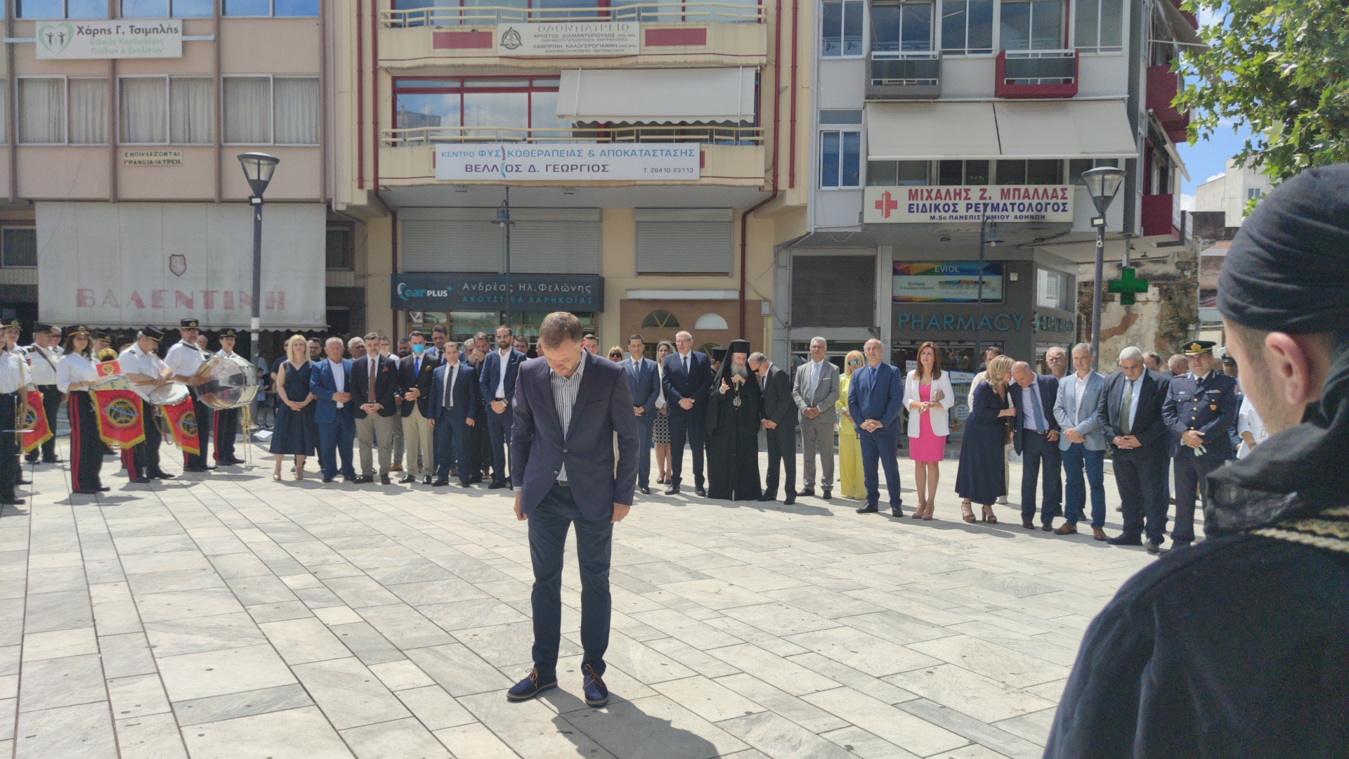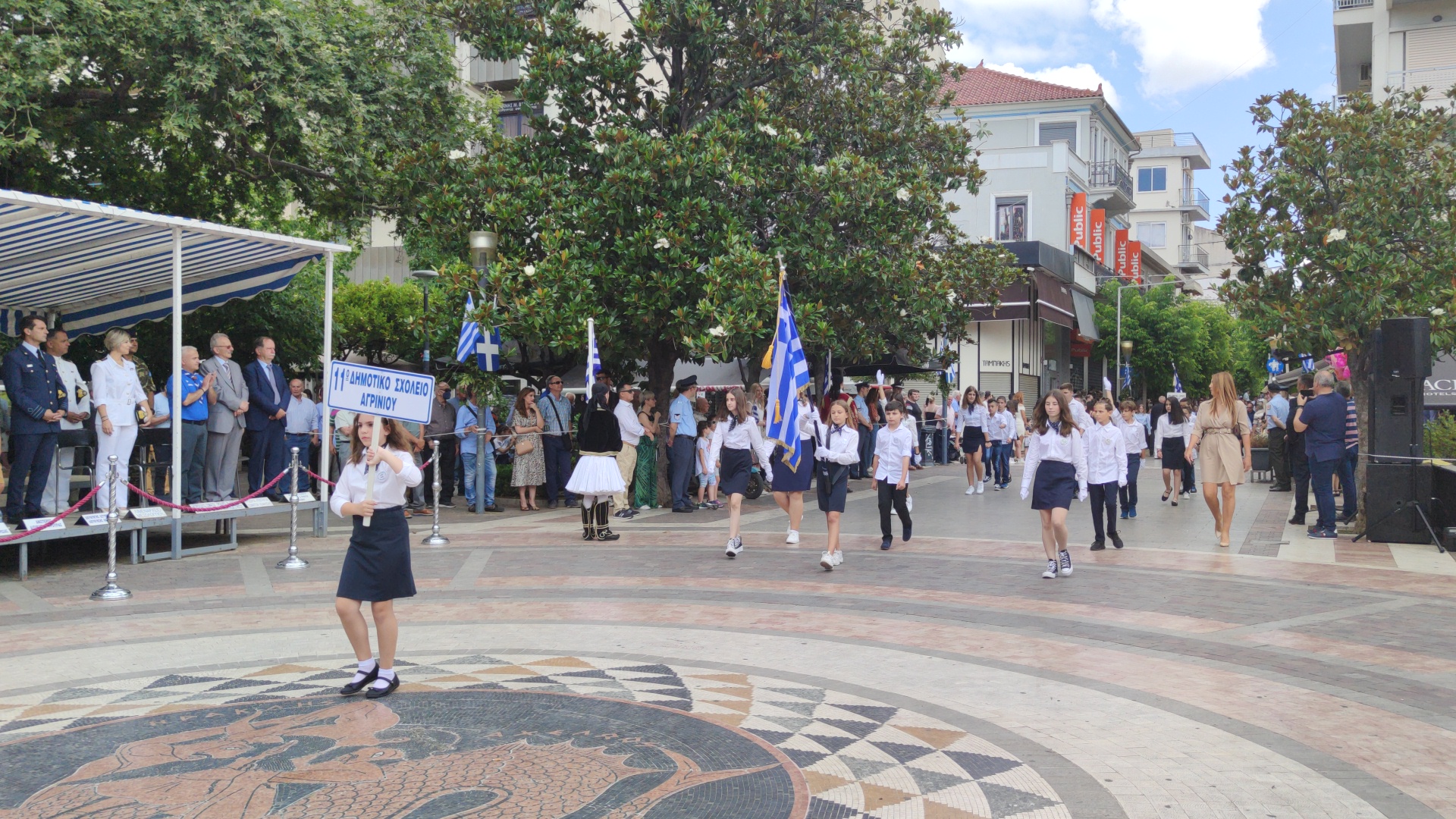 Ακολούθησε επιμνημόσυνη δέηση και κατάθεση στεφάνων στο Μνημείο των Πεσόντων στην Πλατεία Μαρίας Δημάδη και η μαθητική παρέλαση επί της οδού Παπαστράτου, Πλατείας Δημοκρατίας, πεζοδρόμου Χαρ. Τρικούπη.