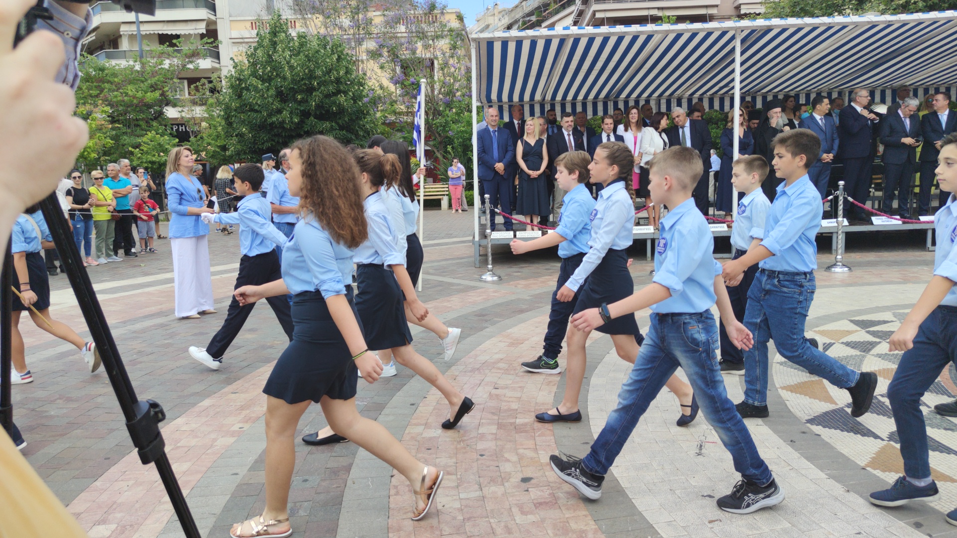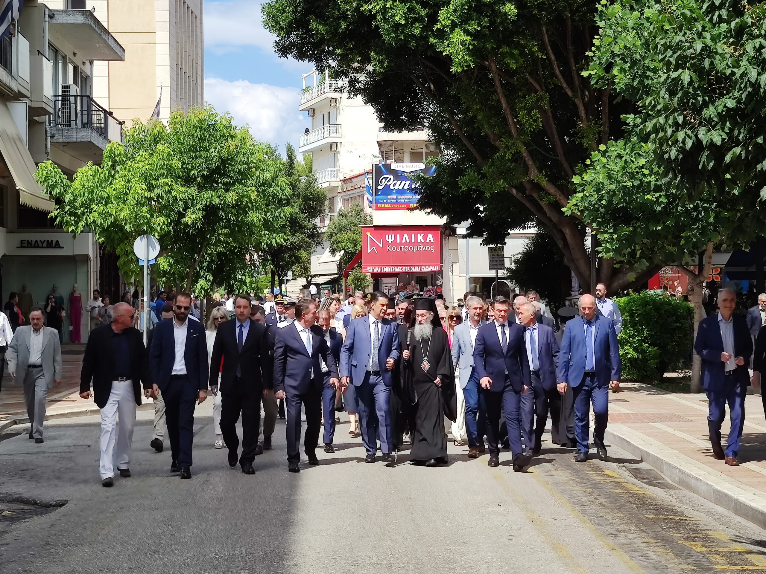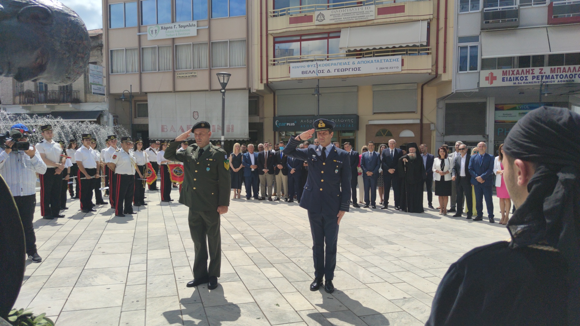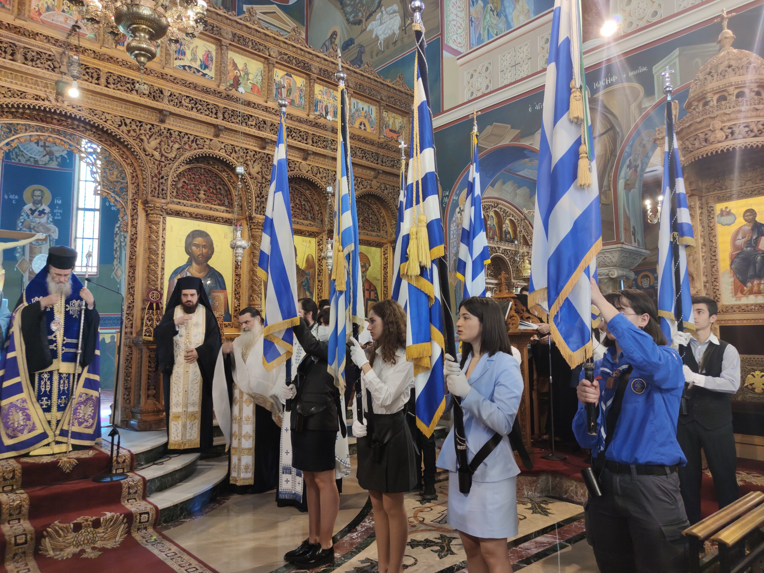 Ακολούθησε επιμνημόσυνη δέηση και κατάθεση στεφάνων στο Μνημείο των Πεσόντων στην Πλατεία Μαρίας Δημάδη και η μαθητική παρέλαση επί της οδού Παπαστράτου, Πλατείας Δημοκρατίας, πεζοδρόμου Χαρ. Τρικούπη.