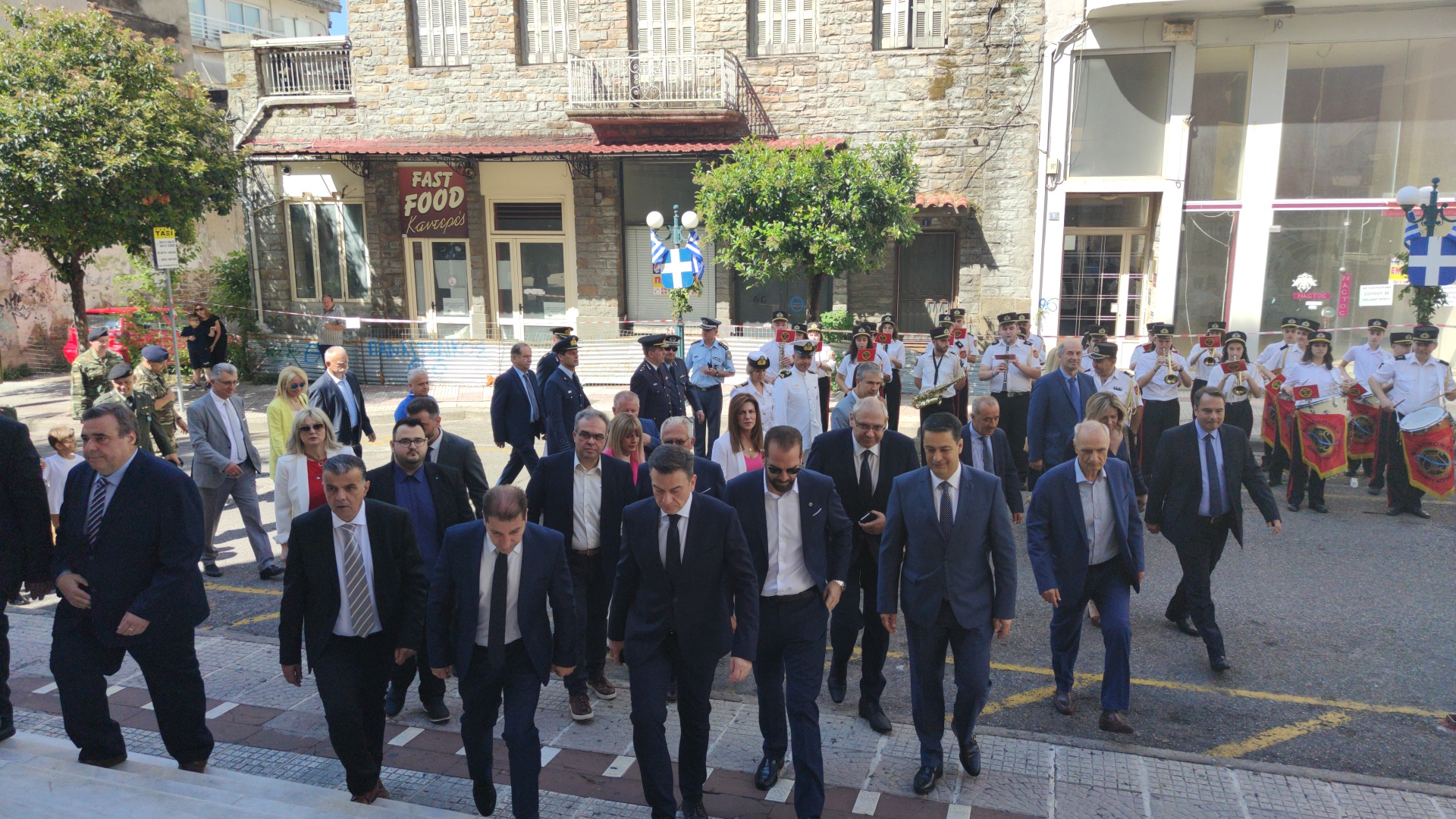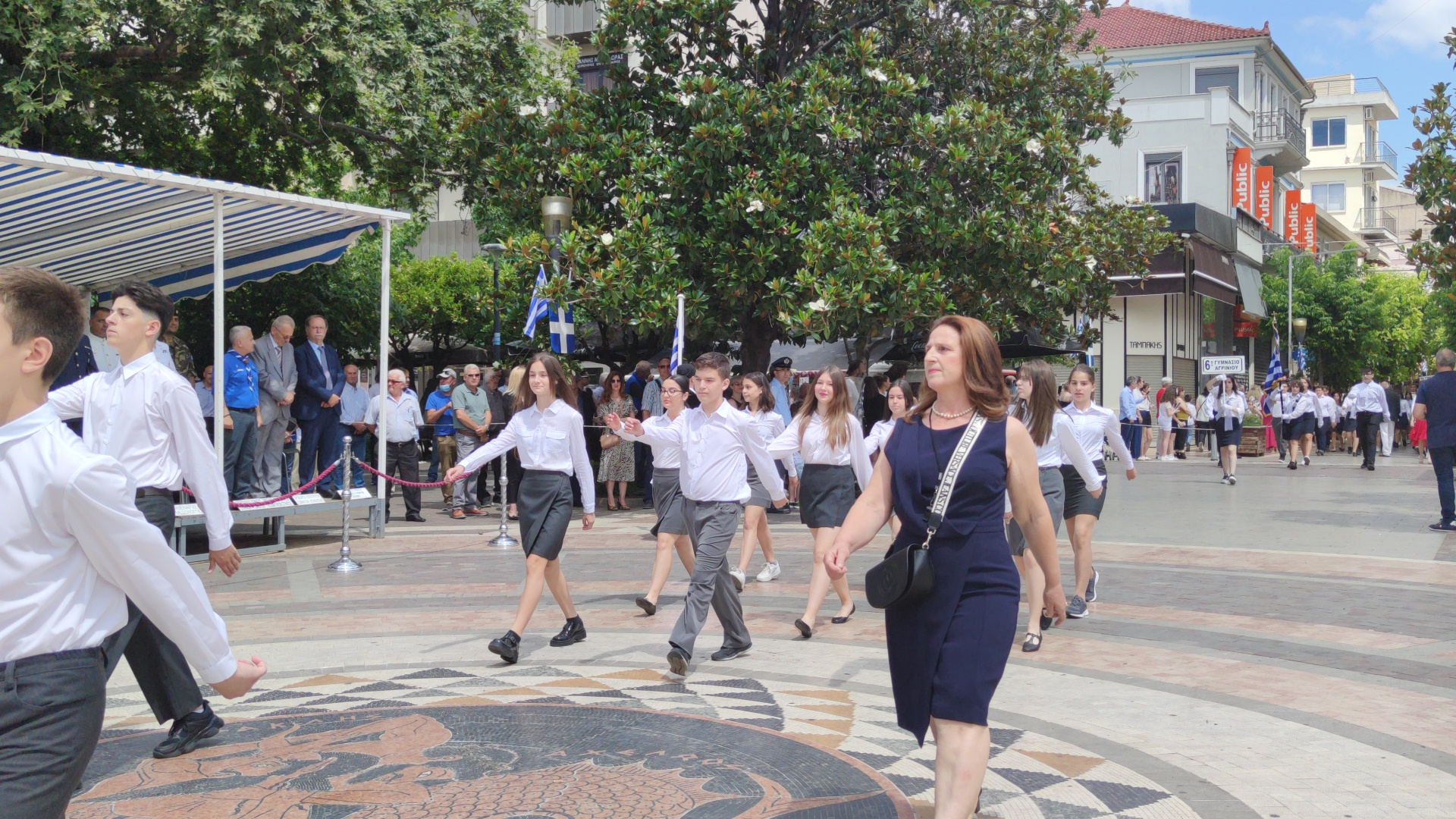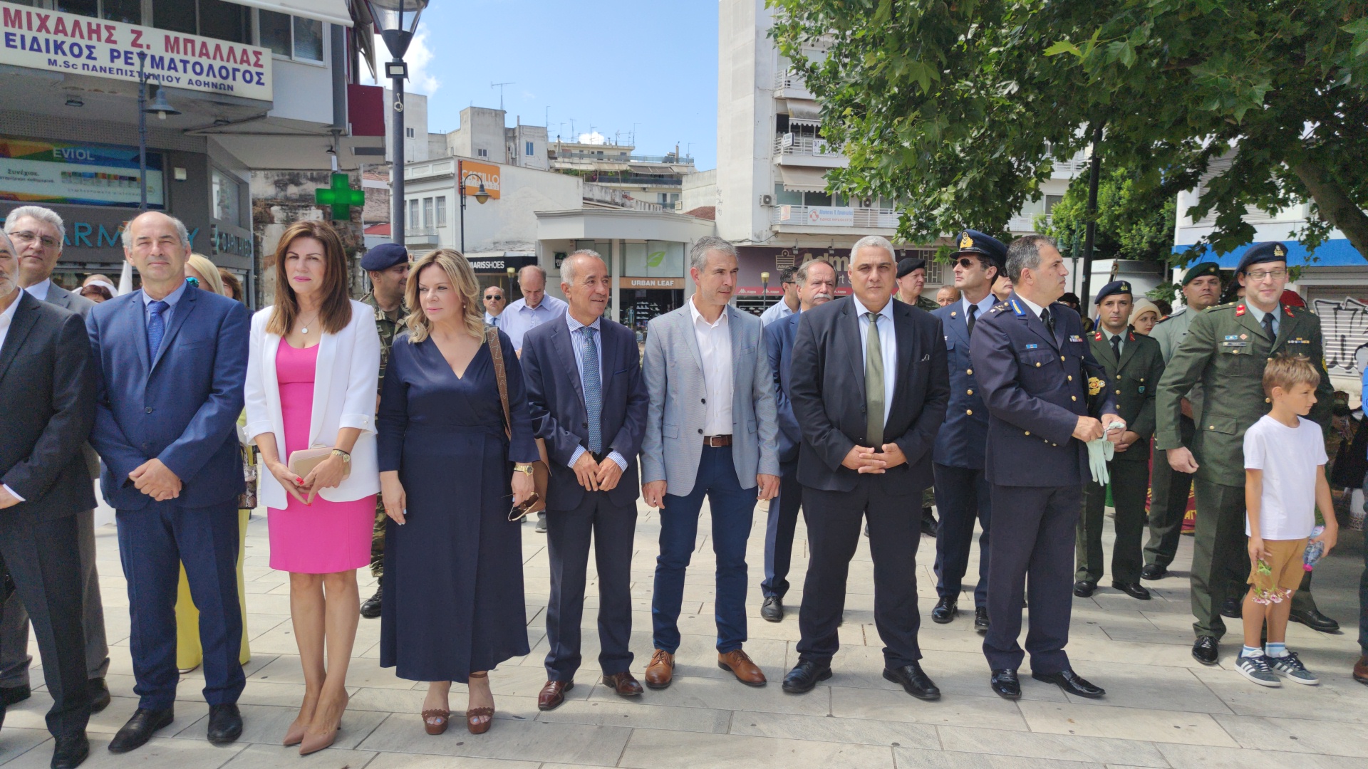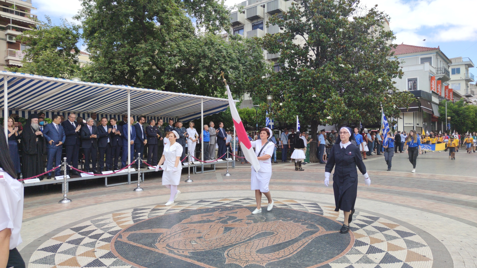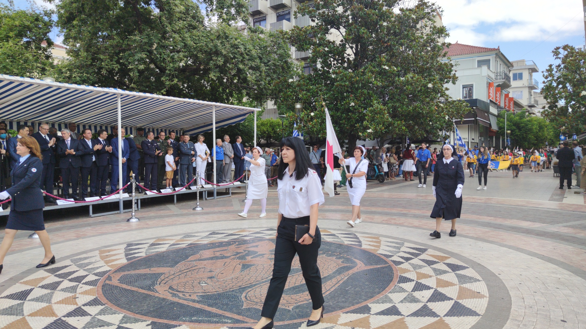 Ακολούθησε επιμνημόσυνη δέηση και κατάθεση στεφάνων στο Μνημείο των Πεσόντων στην Πλατεία Μαρίας Δημάδη και η μαθητική παρέλαση επί της οδού Παπαστράτου, Πλατείας Δημοκρατίας, πεζοδρόμου Χαρ. Τρικούπη.