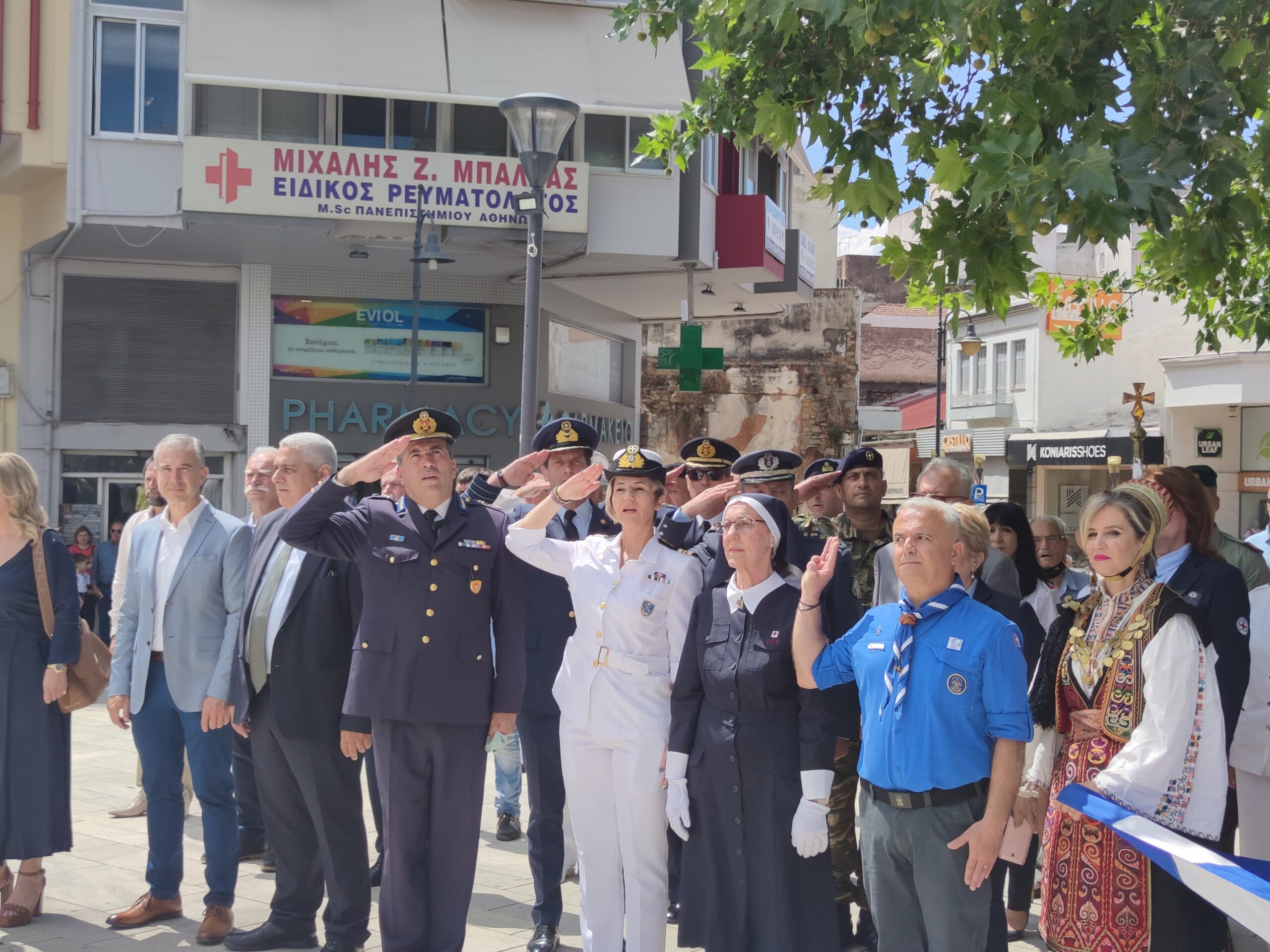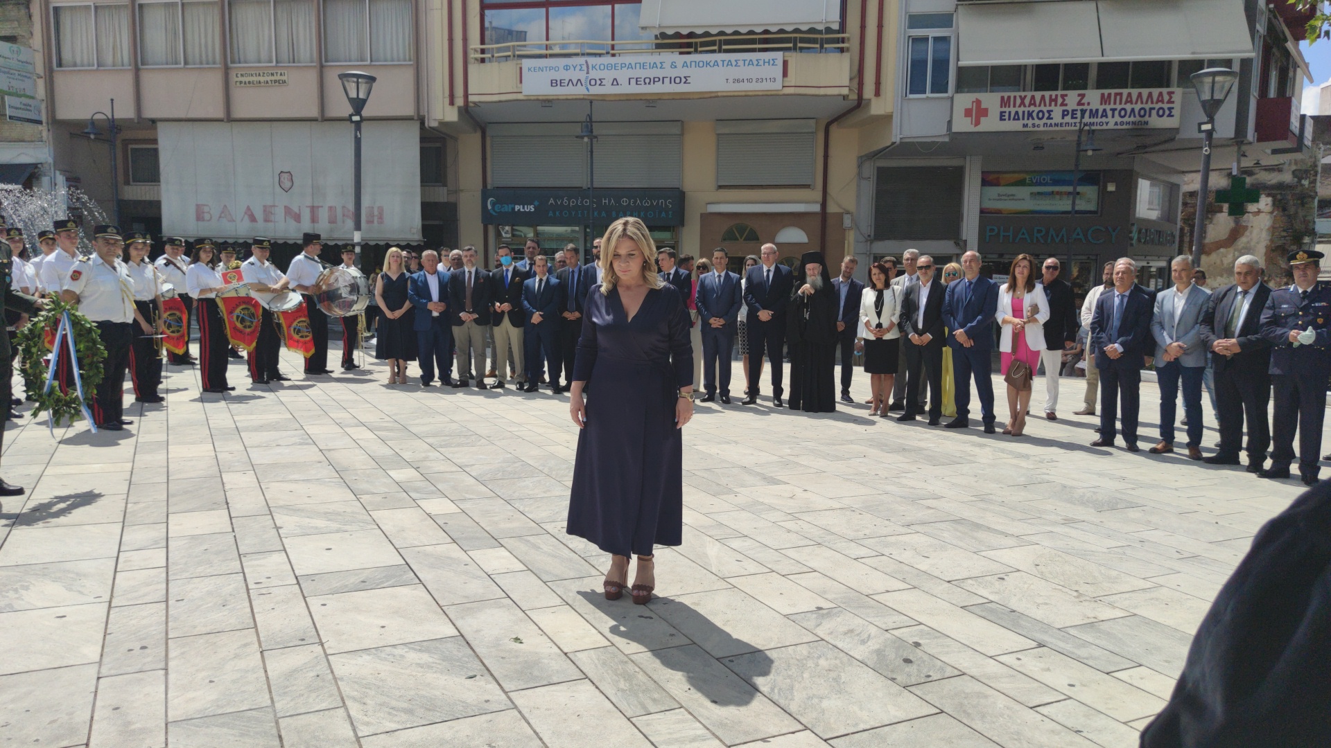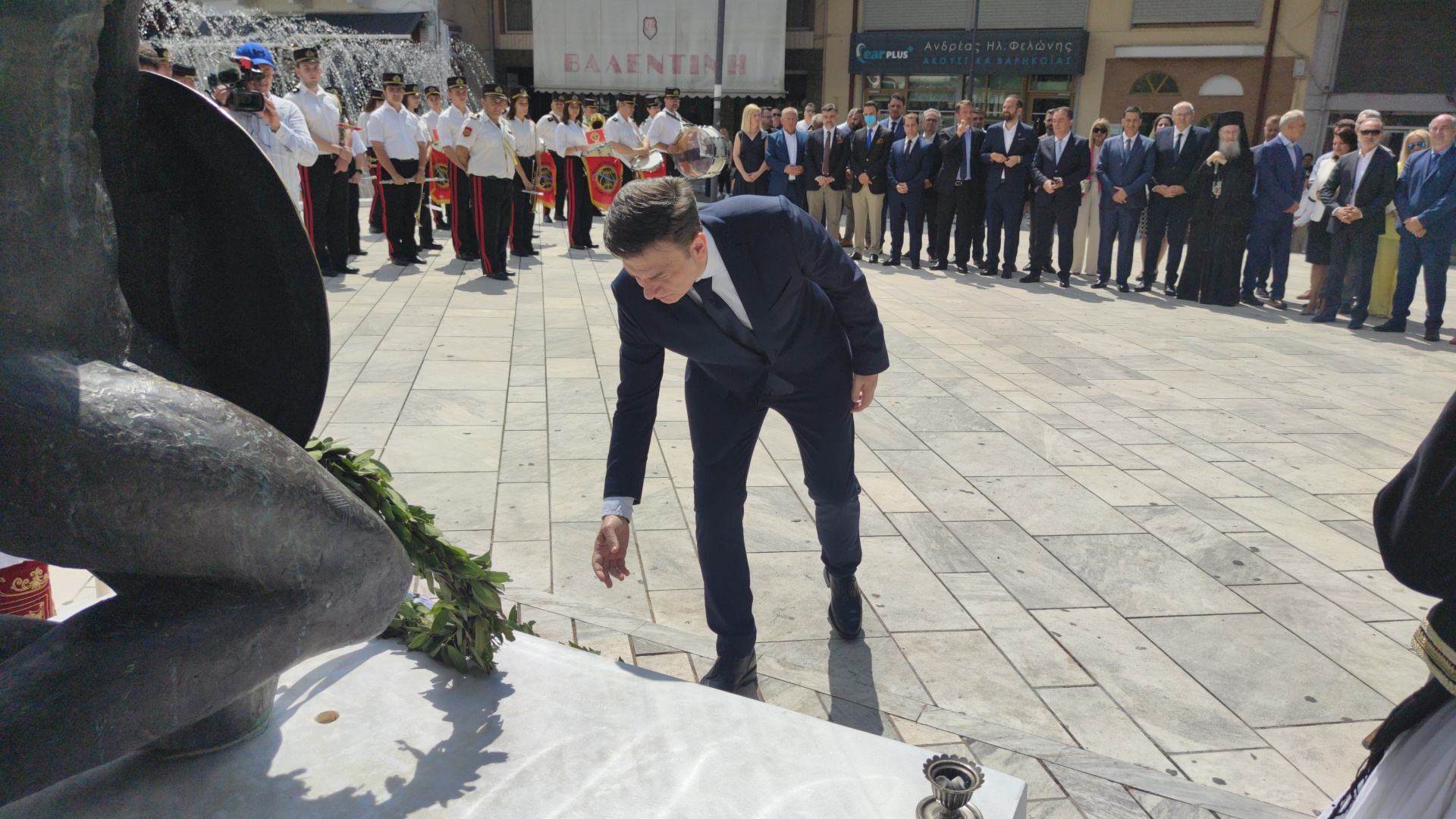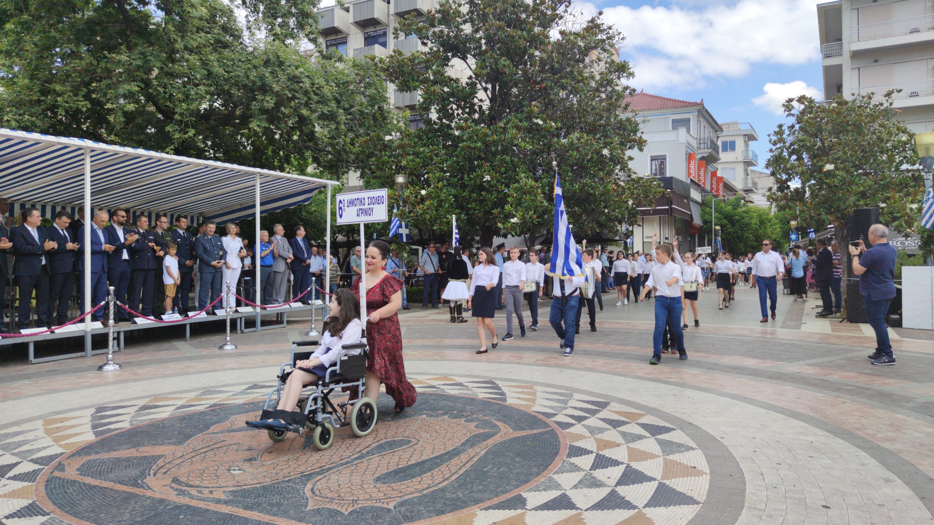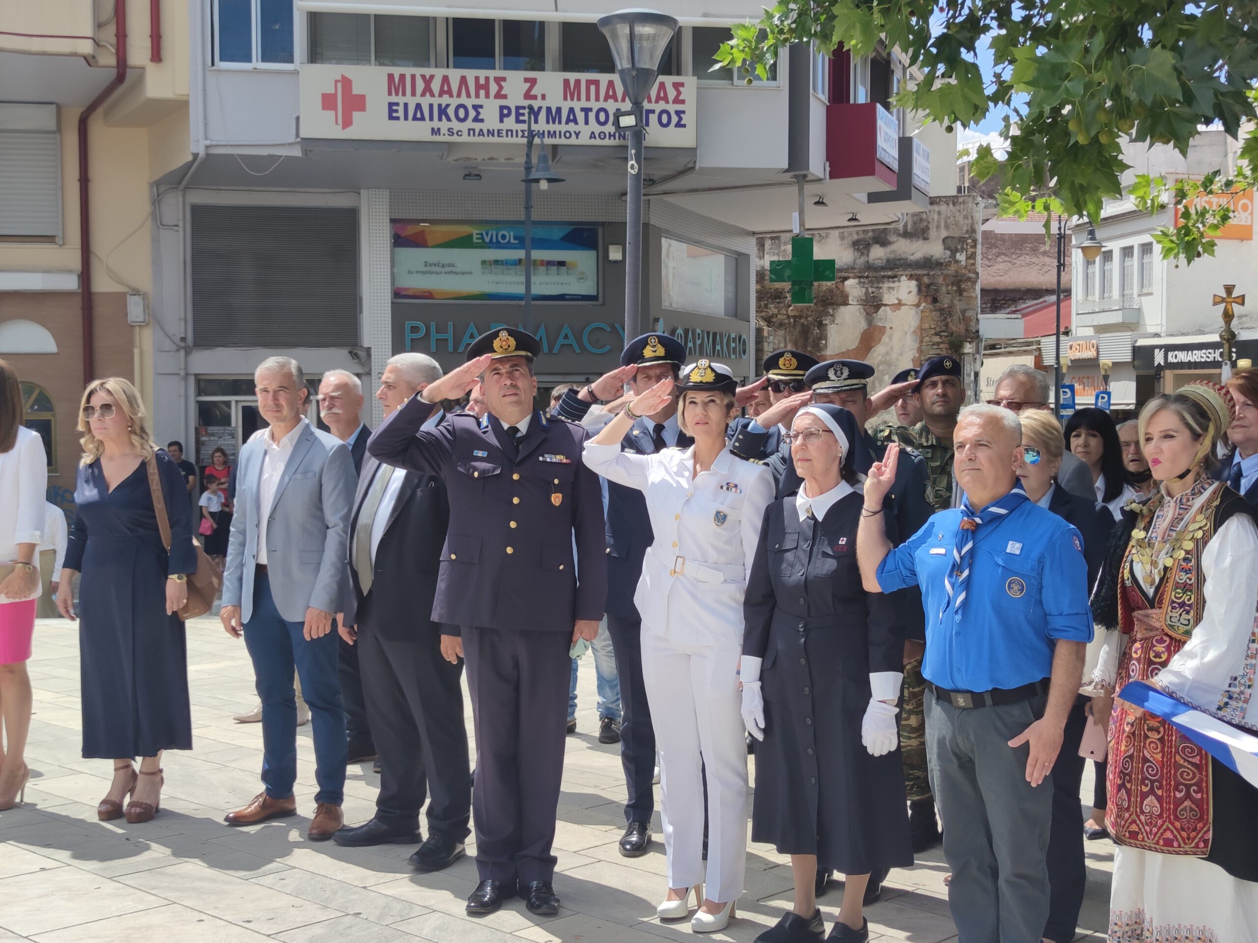 Ακολούθησε επιμνημόσυνη δέηση και κατάθεση στεφάνων στο Μνημείο των Πεσόντων στην Πλατεία Μαρίας Δημάδη και η μαθητική παρέλαση επί της οδού Παπαστράτου, Πλατείας Δημοκρατίας, πεζοδρόμου Χαρ. Τρικούπη.