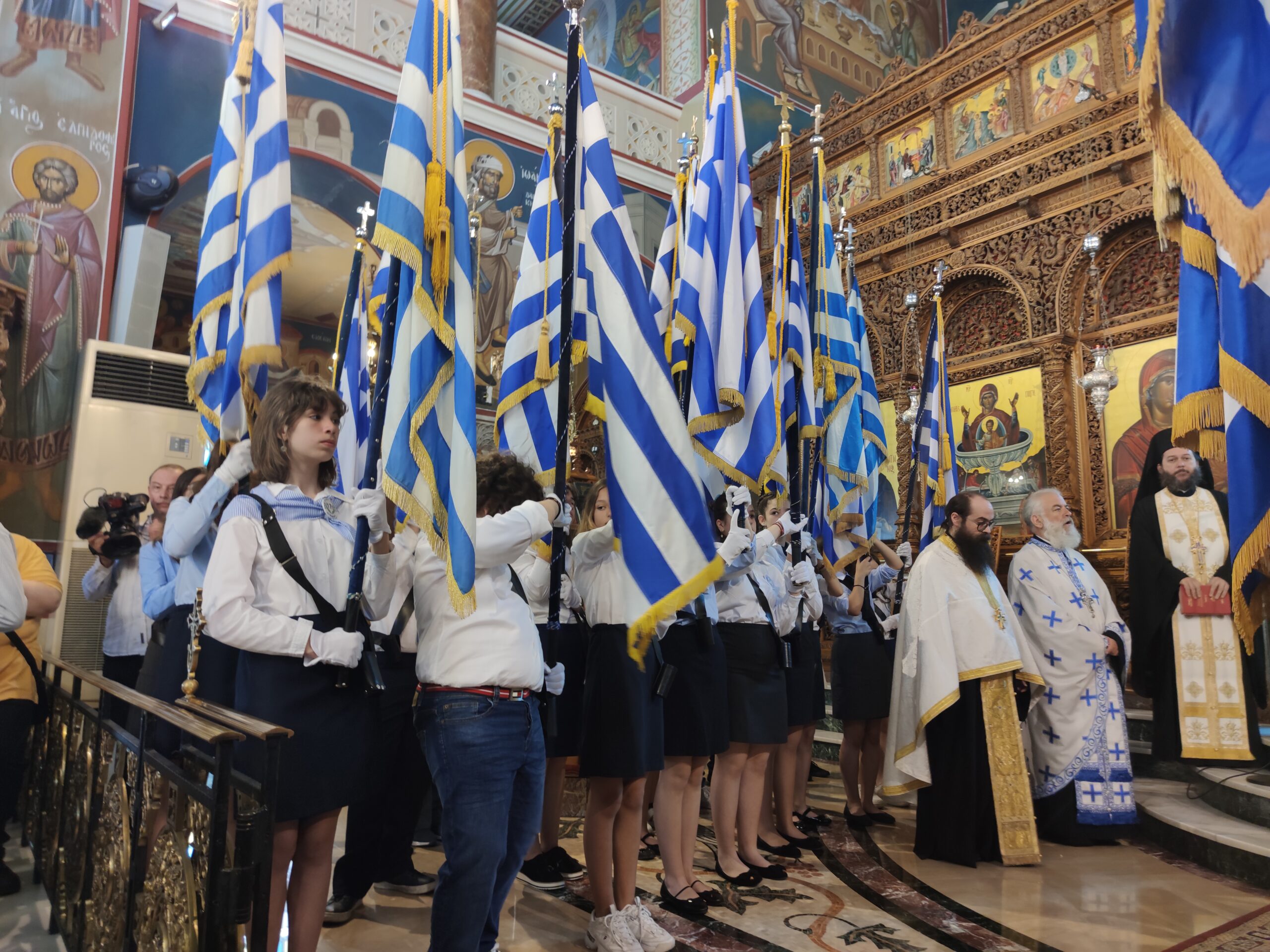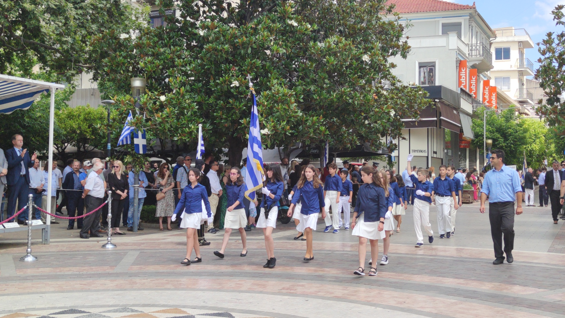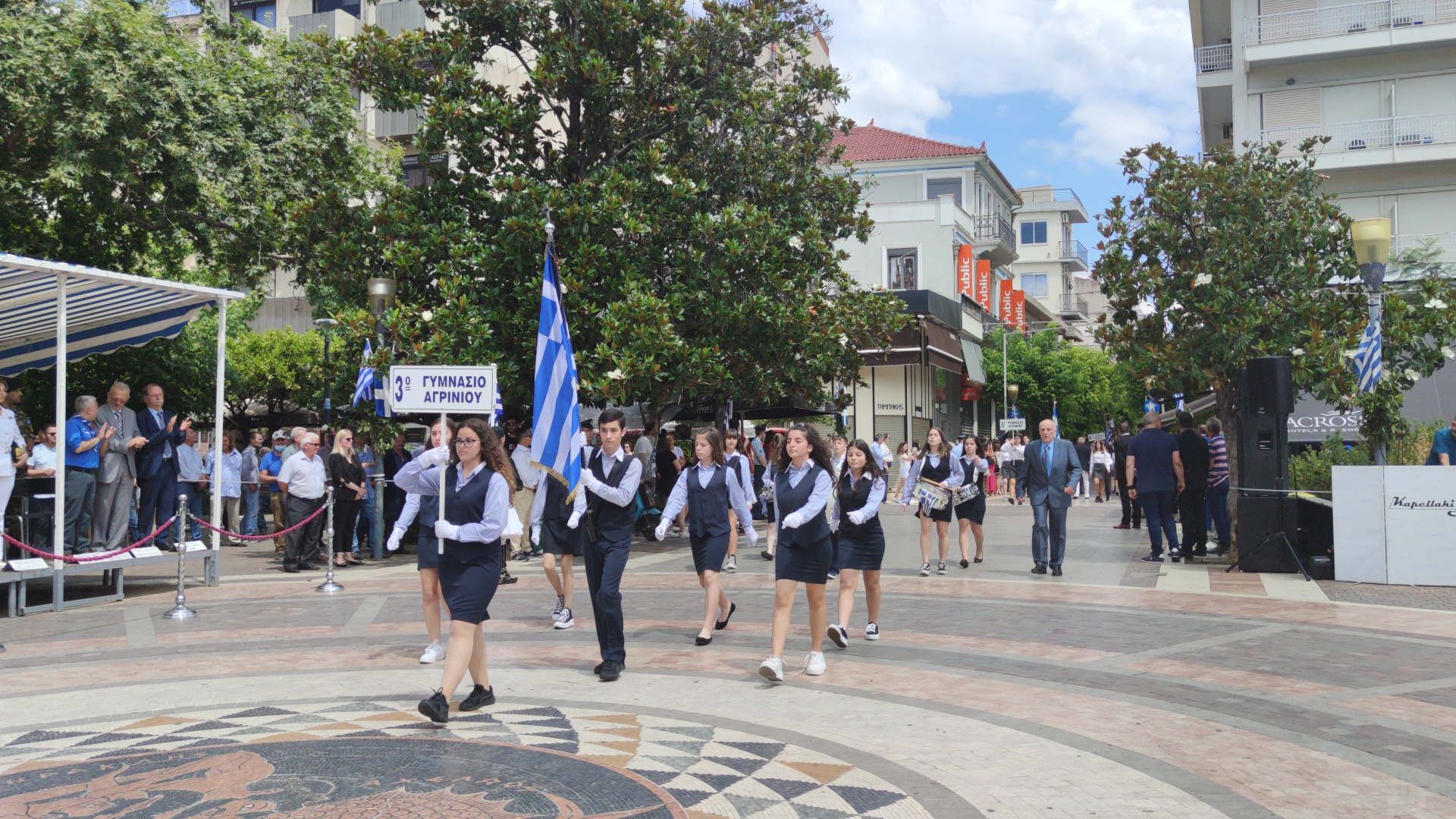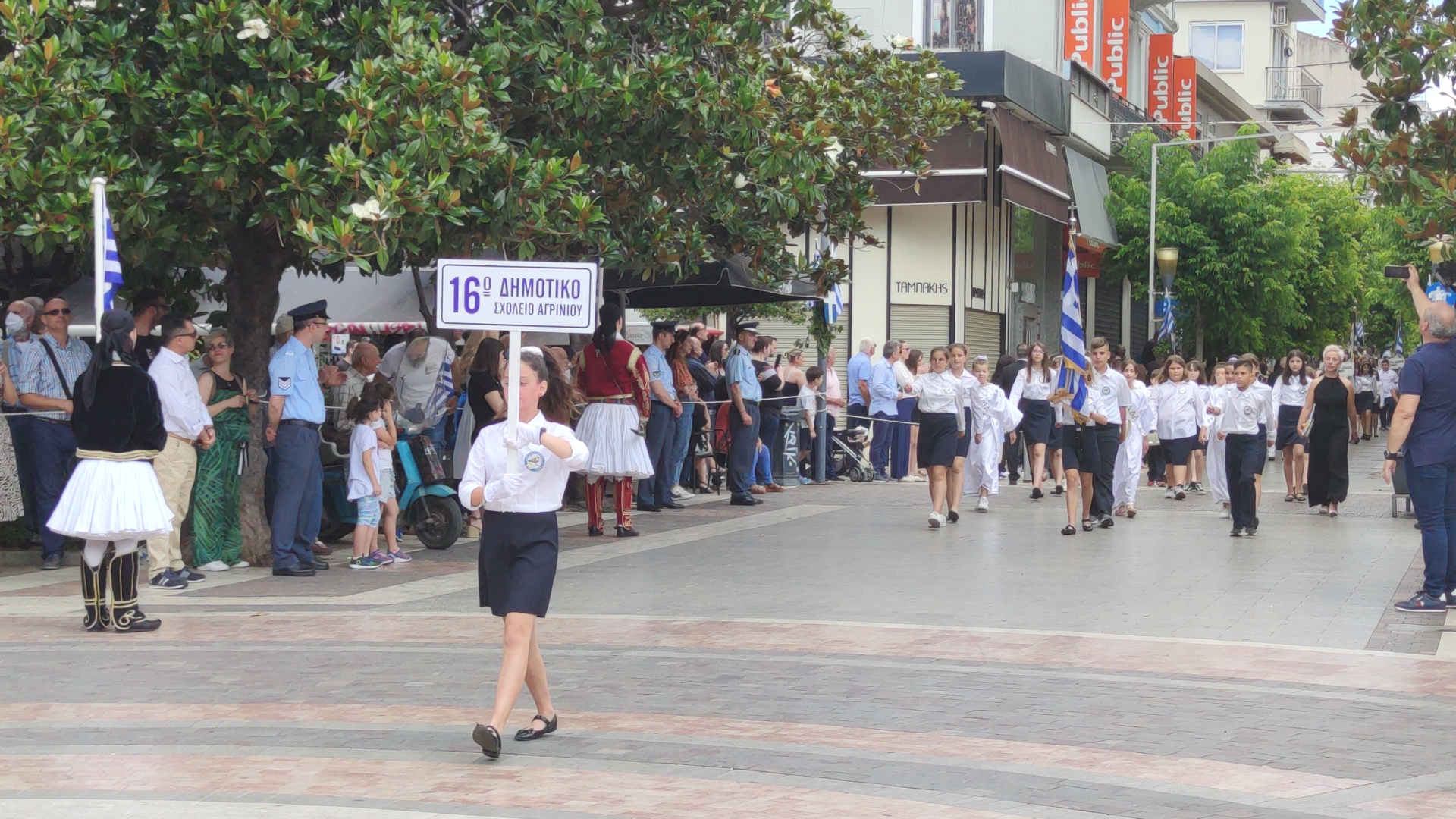 Ακολούθησε επιμνημόσυνη δέηση και κατάθεση στεφάνων στο Μνημείο των Πεσόντων στην Πλατεία Μαρίας Δημάδη και η μαθητική παρέλαση επί της οδού Παπαστράτου, Πλατείας Δημοκρατίας, πεζοδρόμου Χαρ. Τρικούπη.