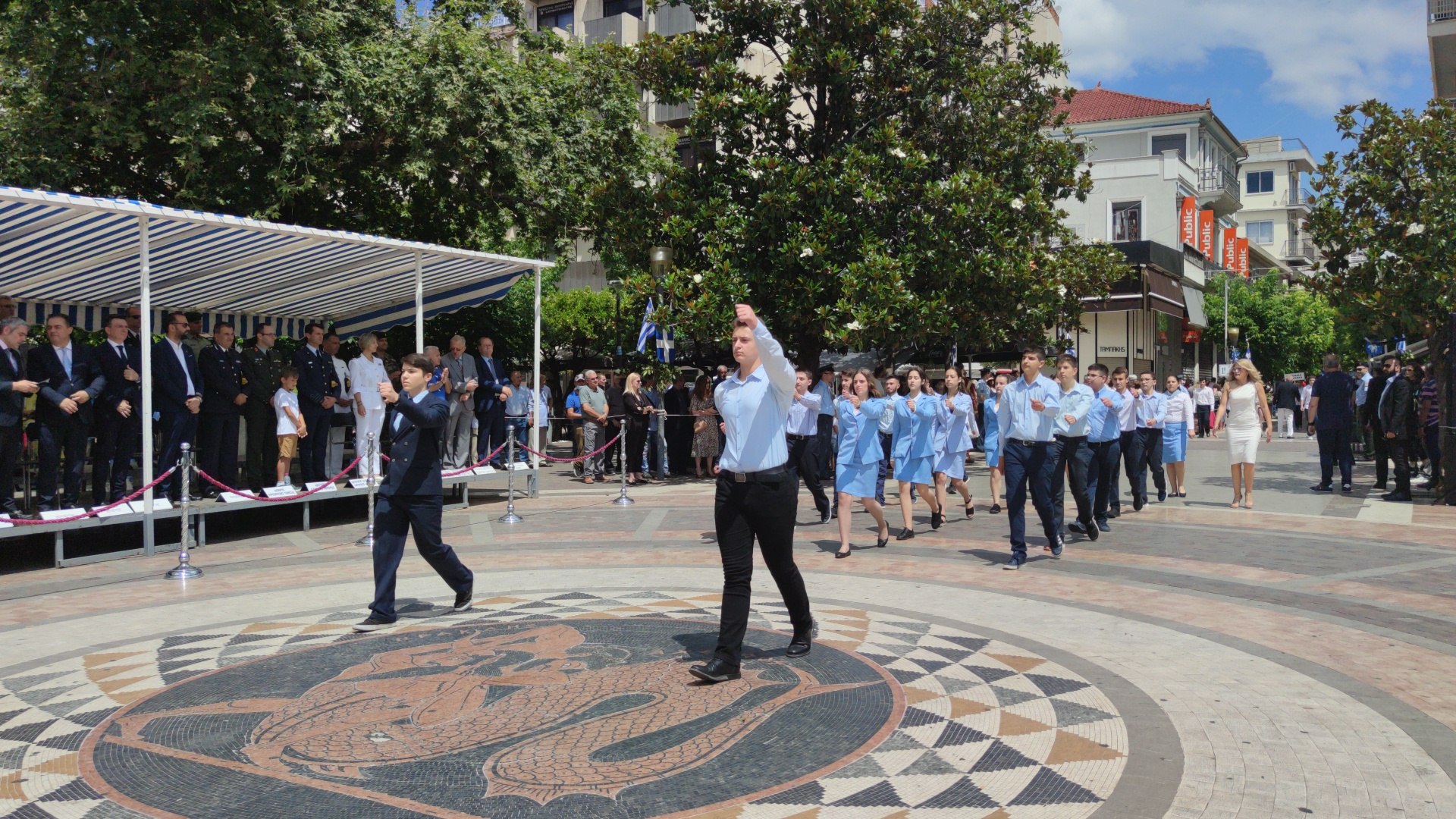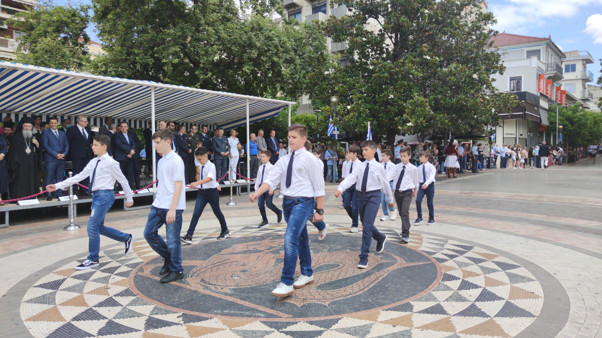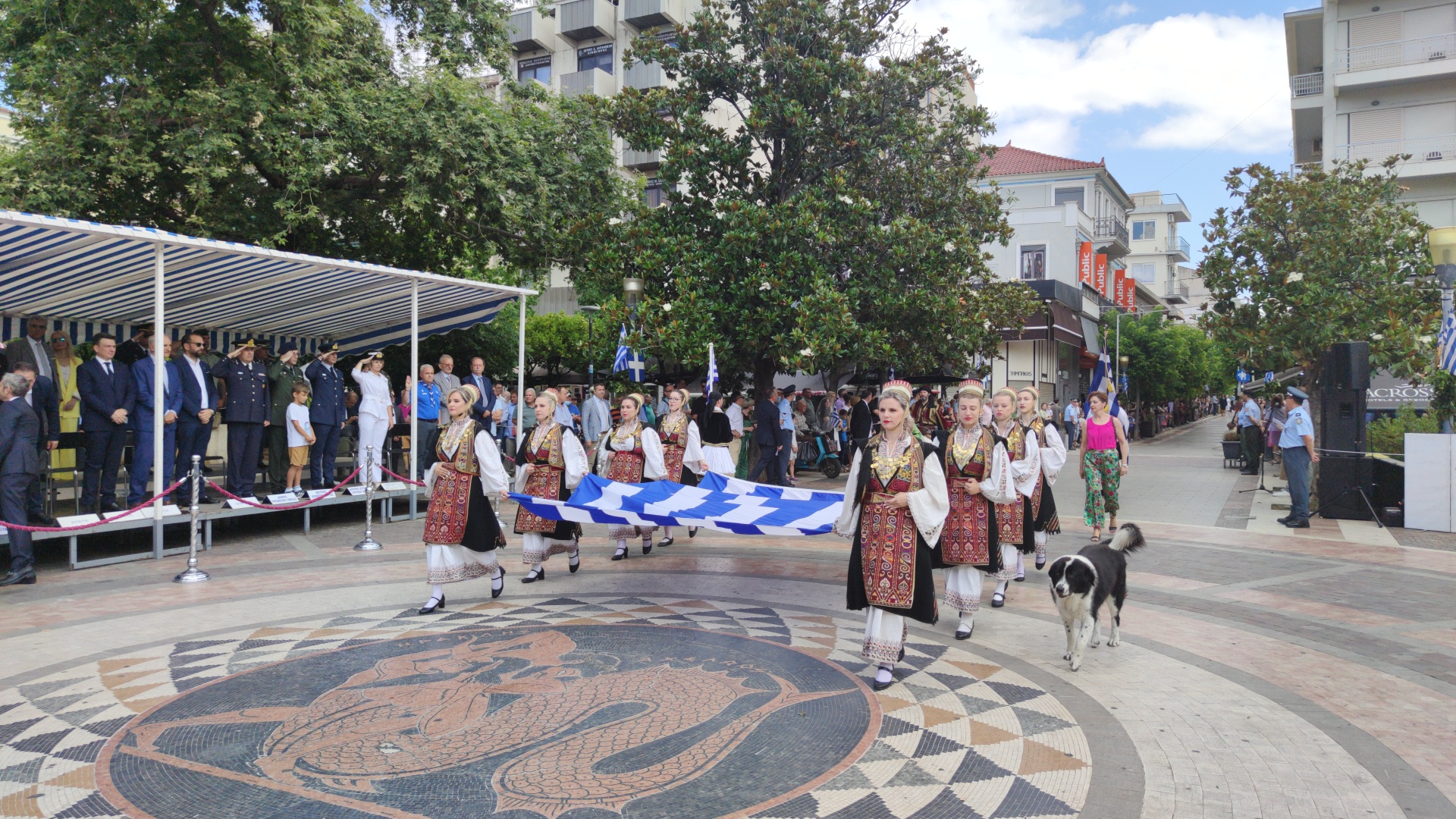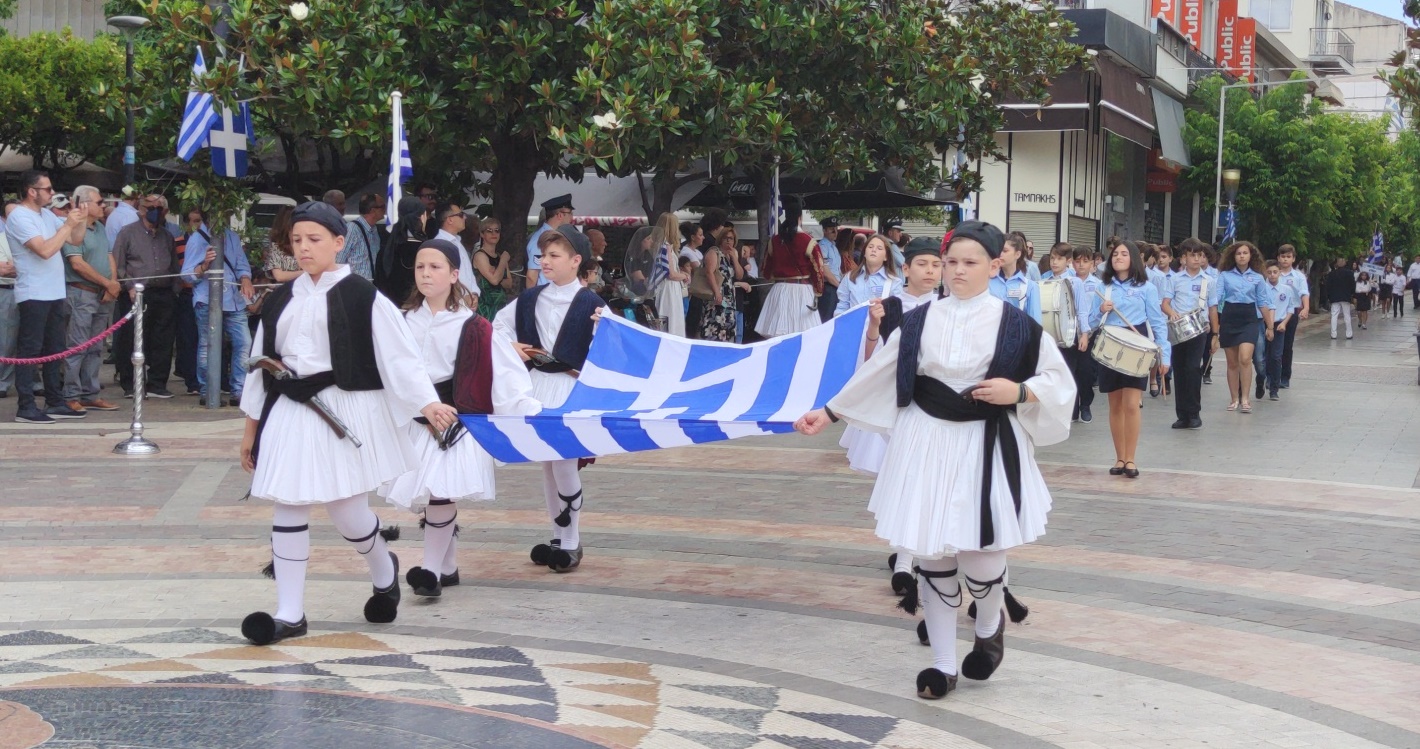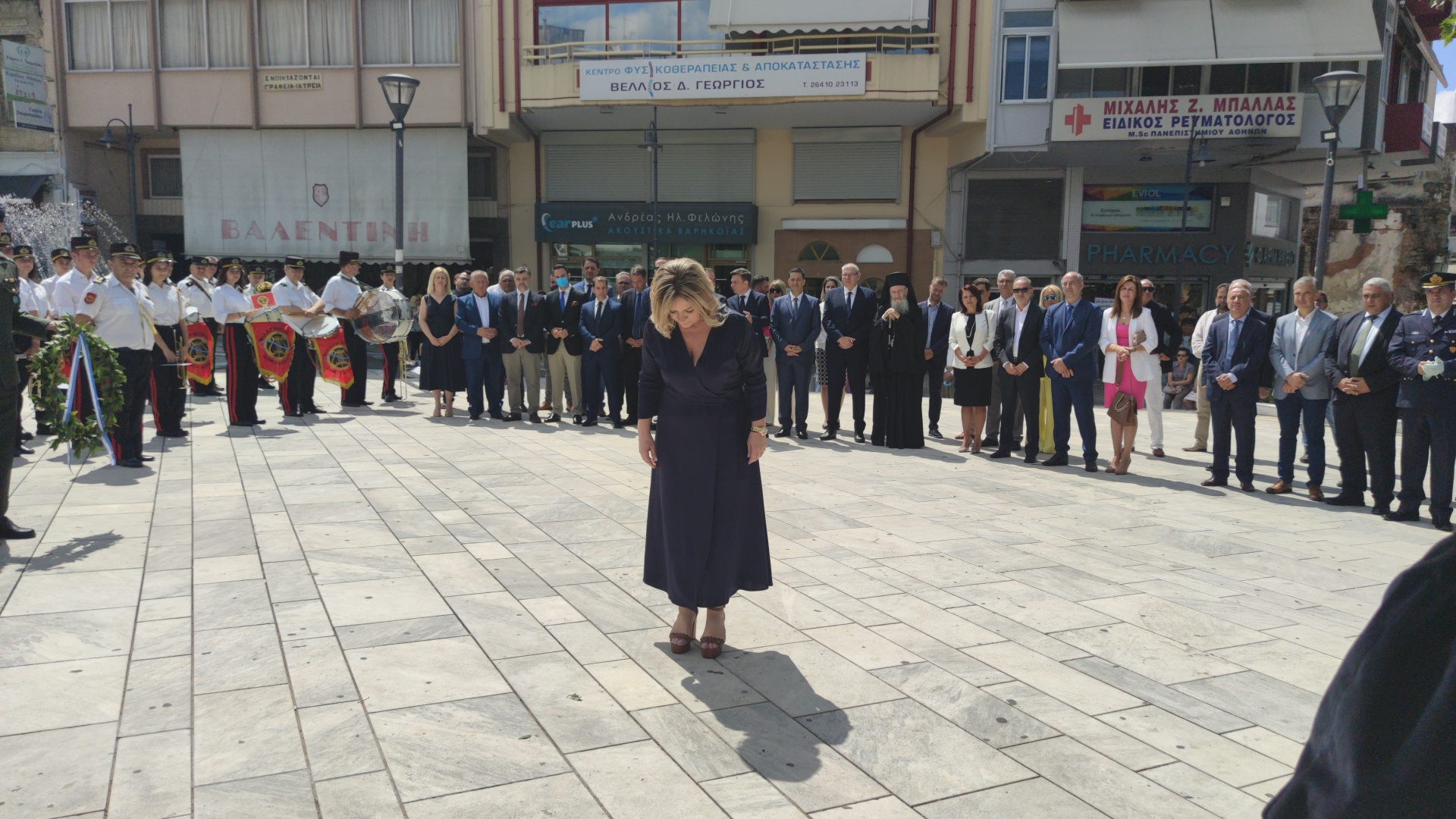 Ακολούθησε επιμνημόσυνη δέηση και κατάθεση στεφάνων στο Μνημείο των Πεσόντων στην Πλατεία Μαρίας Δημάδη και η μαθητική παρέλαση επί της οδού Παπαστράτου, Πλατείας Δημοκρατίας, πεζοδρόμου Χαρ. Τρικούπη.