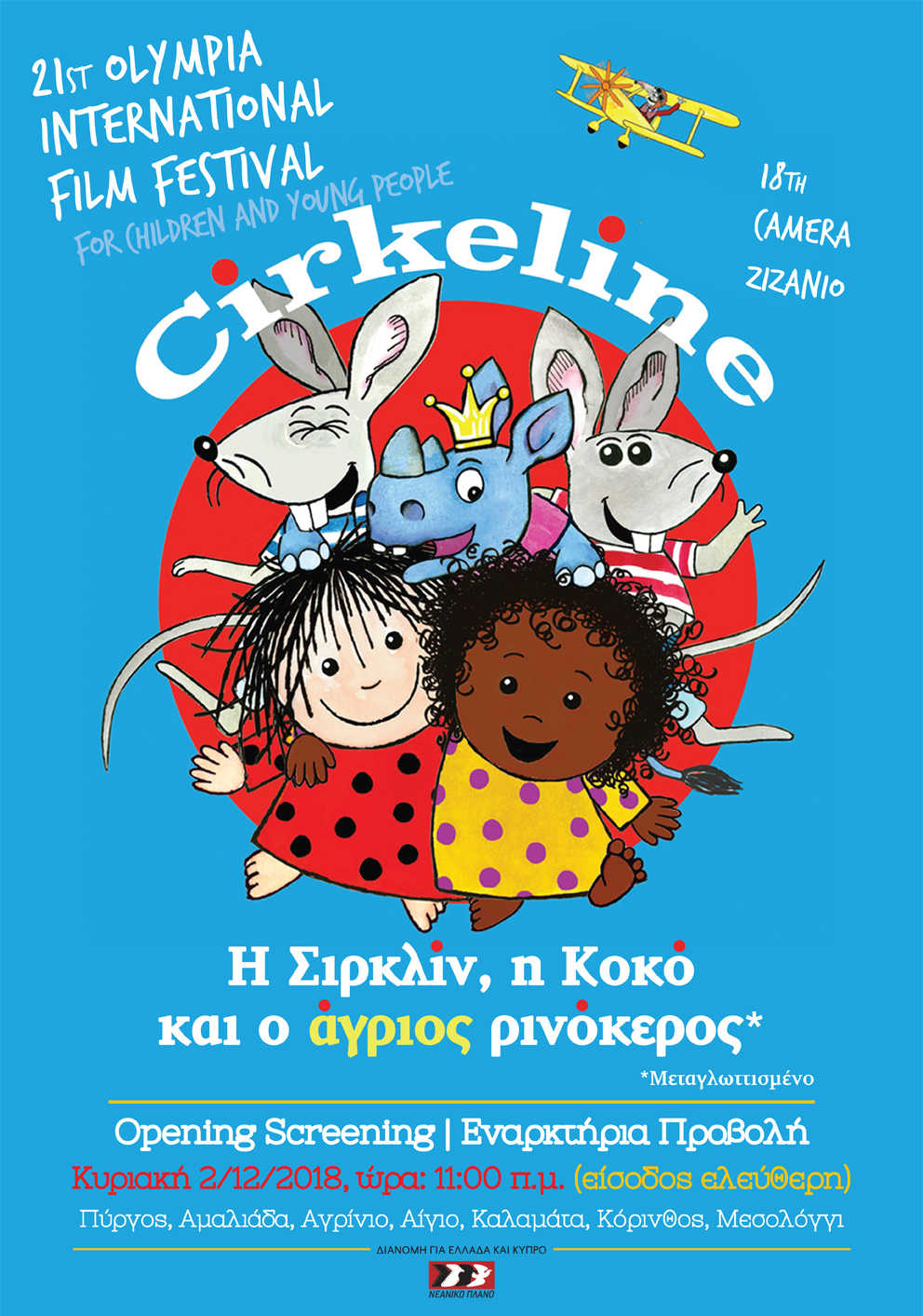 Η πανελλαδική πρεμιέρα της ταινίας Η Σιρκλίν, η Κοκό και ο άγριος ρινόκερος θα πραγματοποιηθεί στον Πύργο, στις 11 το πρωί της Κυριακής 2/12/2018 και θα προβληθεί ταυτόχρονα στο Δημοτικό κινηματογράφο ΄΄ΑΝΕΣΙΣ΄΄,